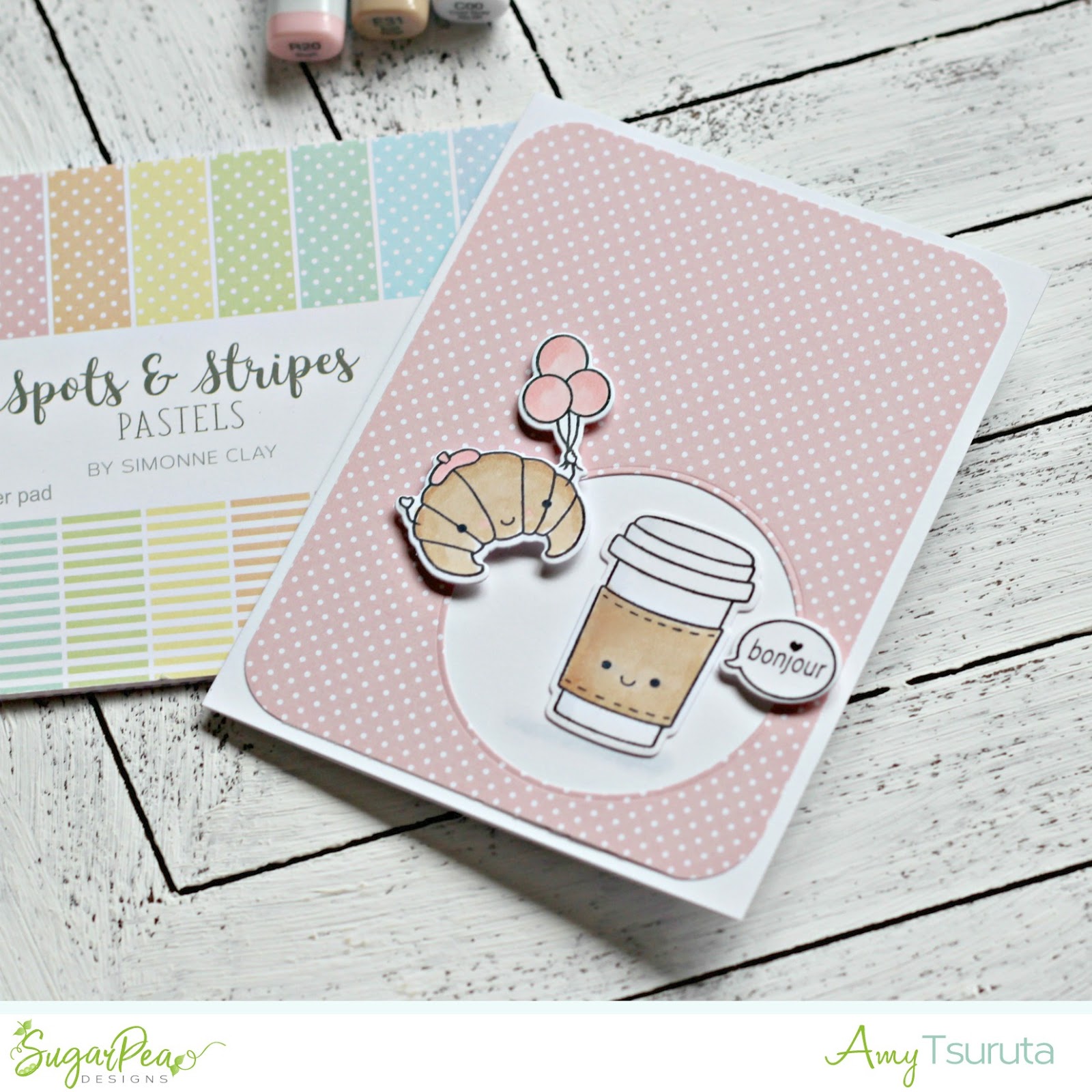 I LOVE that bonjour word bubble, so sweet! The Spots & Stripes Pastels panel is a fun way to add color to my overall design. I like the kraft and pink combo.