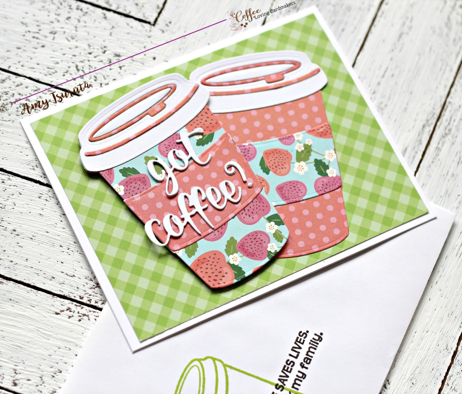 I TRY telling myself I do not NEED more coffee cup dies…and then YOU come along with those just-NUTS cute cups, with summery strawberry paper and polka DOTS and a sweet green plaid–and I swoon and think I do need more coffee cup dies!