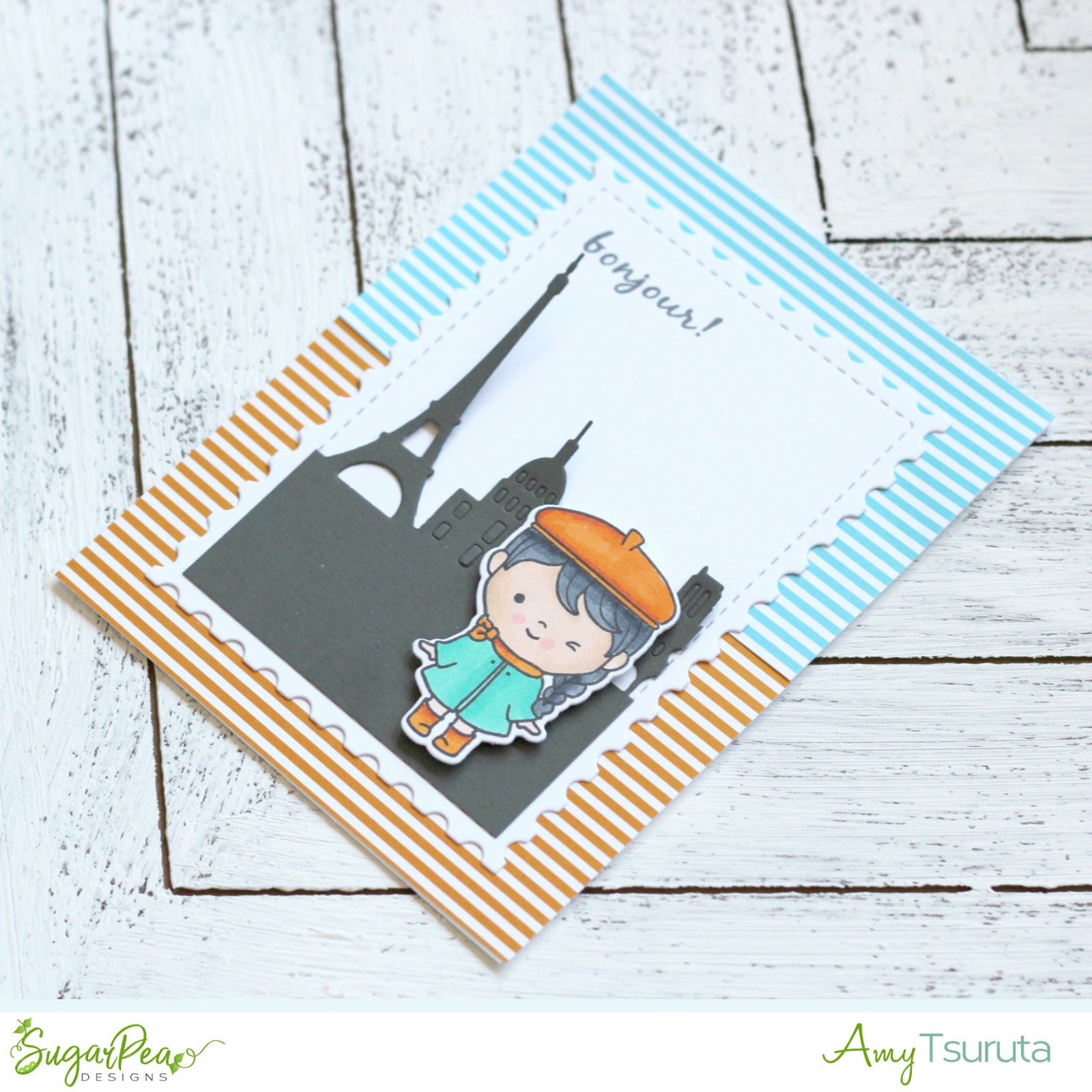 That little Parisian girl is so cute!!!! LOVE all your beautiful cards. Will miss seeing you on the Sugar Pea team.