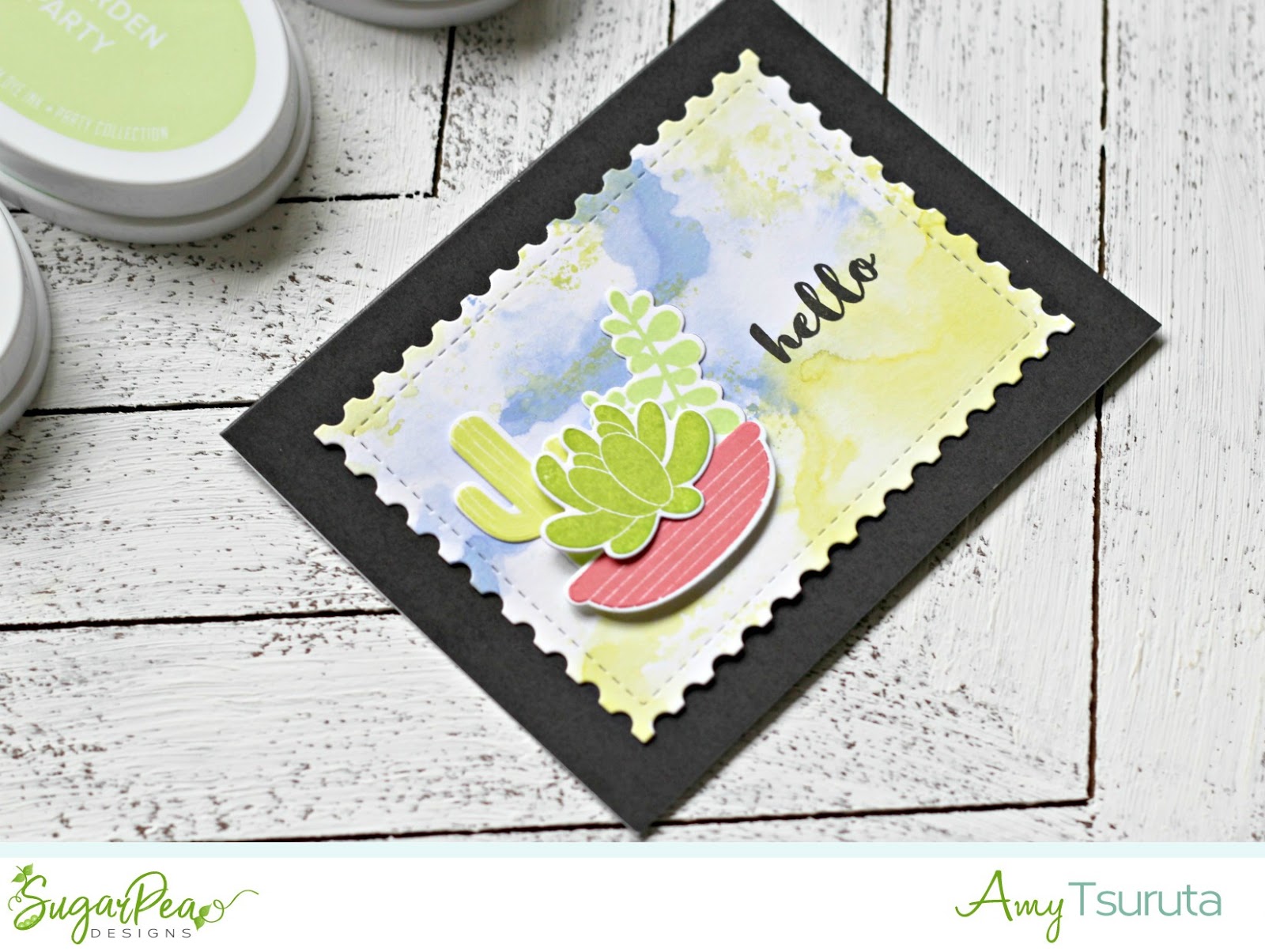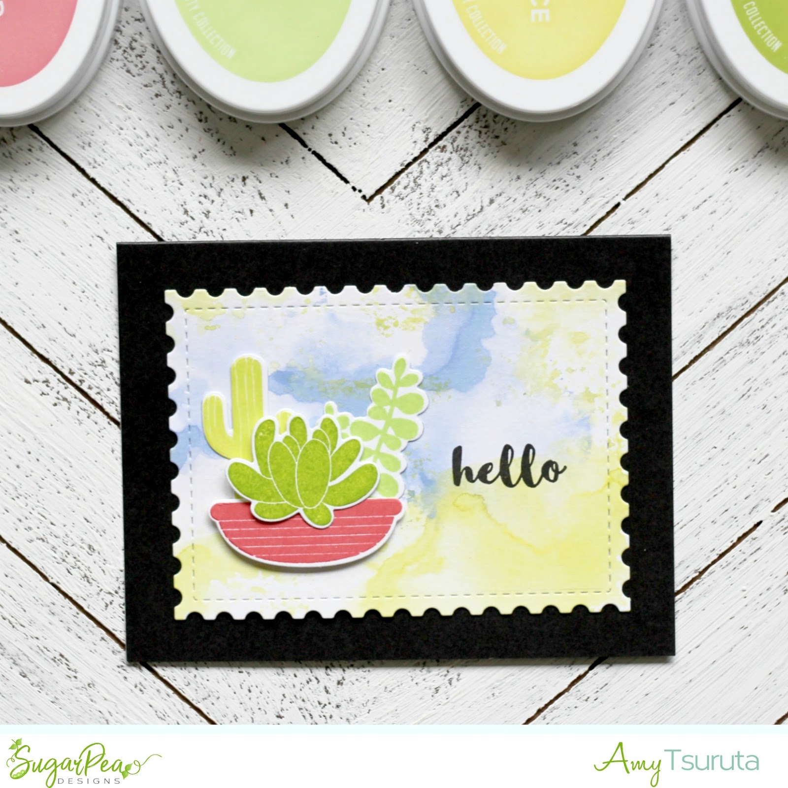 I inked up the different succulents with three different shades of green ink. The planter pot ink was a fun contrast in color, don’t you agree?