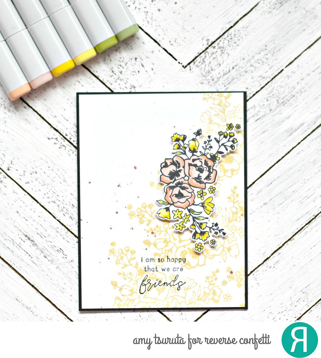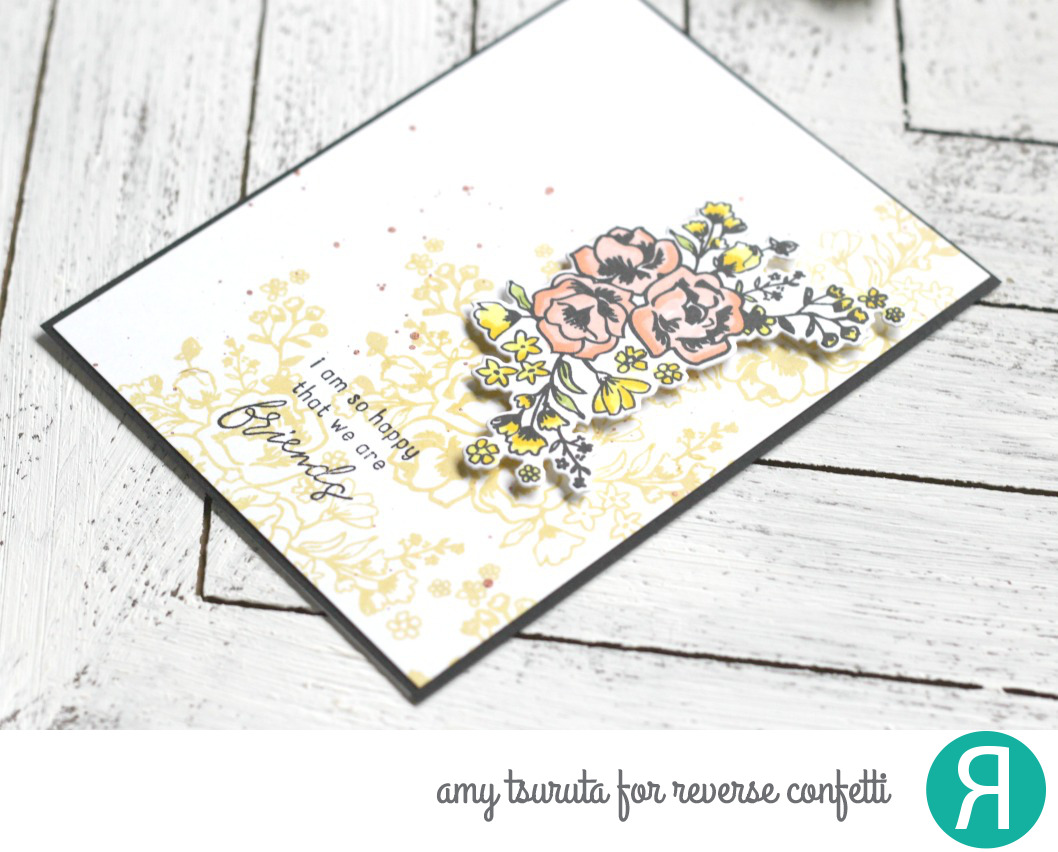 I could not agree more… the sentiments are wonderful. This card of yours is stunning. Not only the florals but that splatter of copper really makes it perfect. Nicely done.