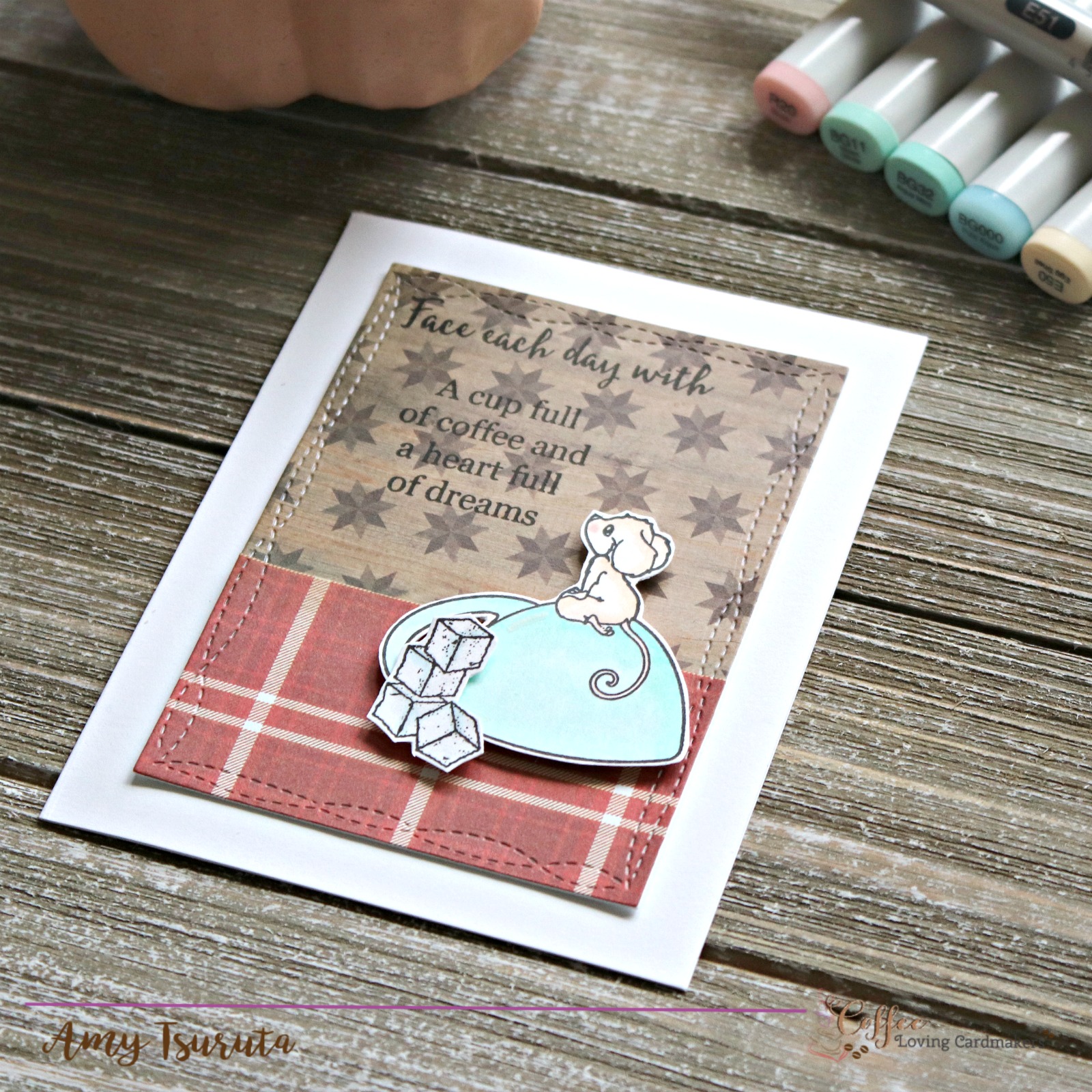 Amy, Oh my! Your card is absolutely adorable! I love the little mouse on the overturned cup. Nice touch with the stamping on the designer paper. Thanks for playing along with the Paper Craft Crew!