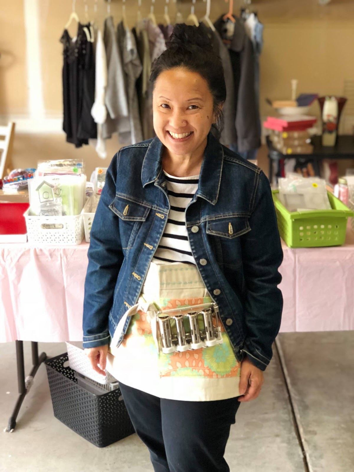 LOVA LOVA LOVA yr coin changer. Every garage sale person NEEDS that. Behind you, see that your organization on the table and the clothes rack is superb. Wonder if I could have a garage sale from 6pm to 11 pm? Lol. ♡