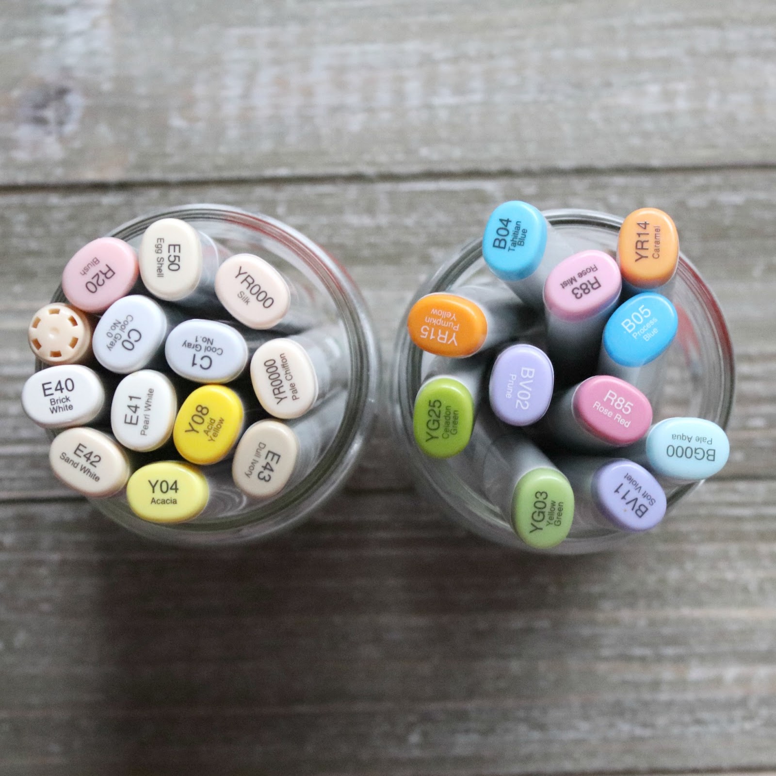The Copic Ciao is E51. Something I’ve been doing is to pop the copics I’m using for a project in mason jars for ease and organization. Yes, my desk can get that messy = things get lost.
