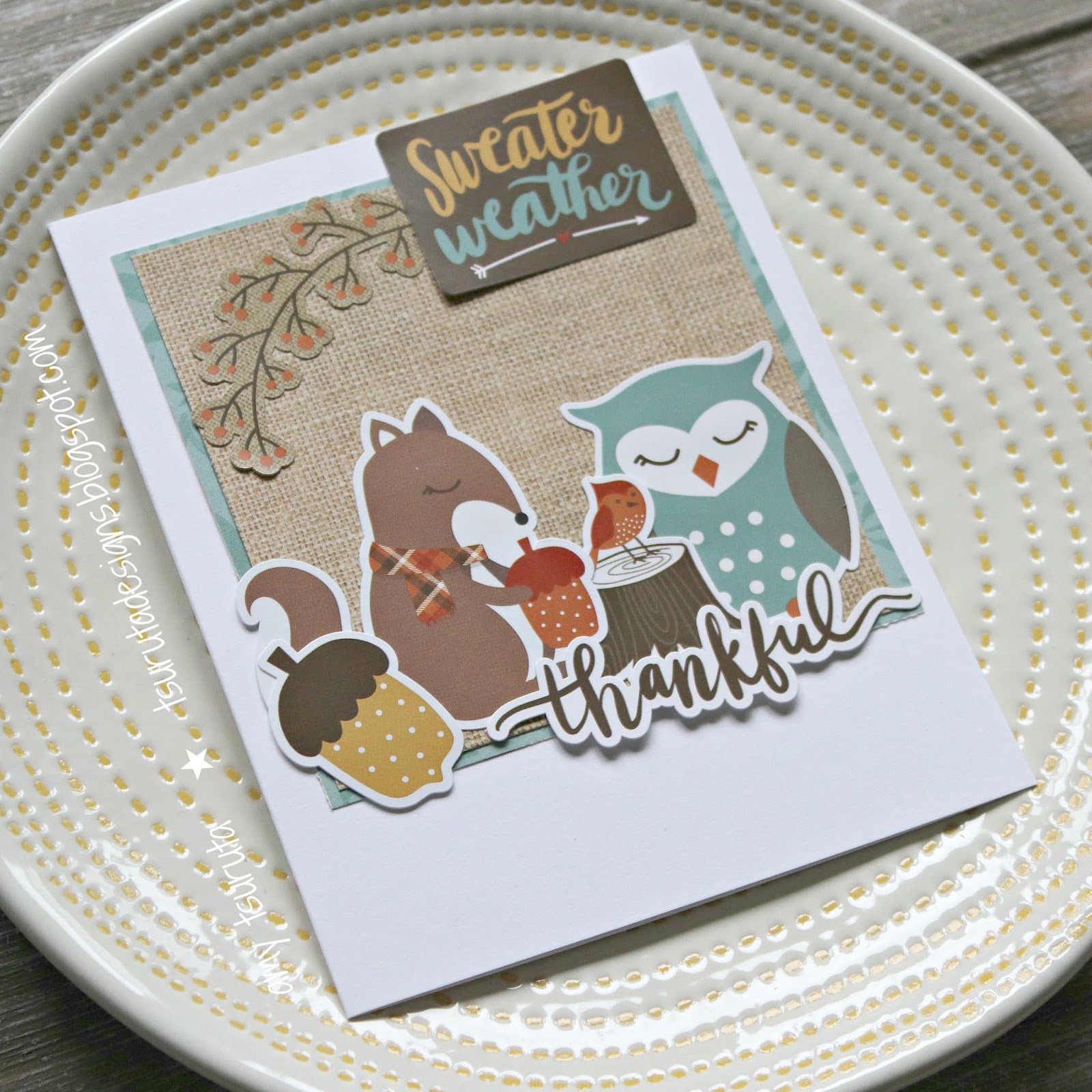 Your woodland card is sheer delight, Amy, especially as it's infused with gratefulness! We're blessed to have you in our midst, sharing your creativity, sparking inspiration and offering support and encouragement tirelessly! Wishing you and your family a most Happy Thanksgiving. As you know, our Canadian Thanksgiving was weeks ago but…a pumpkin 'something' on my treats menu at some point today (or perhaps something apple spice *grin*)