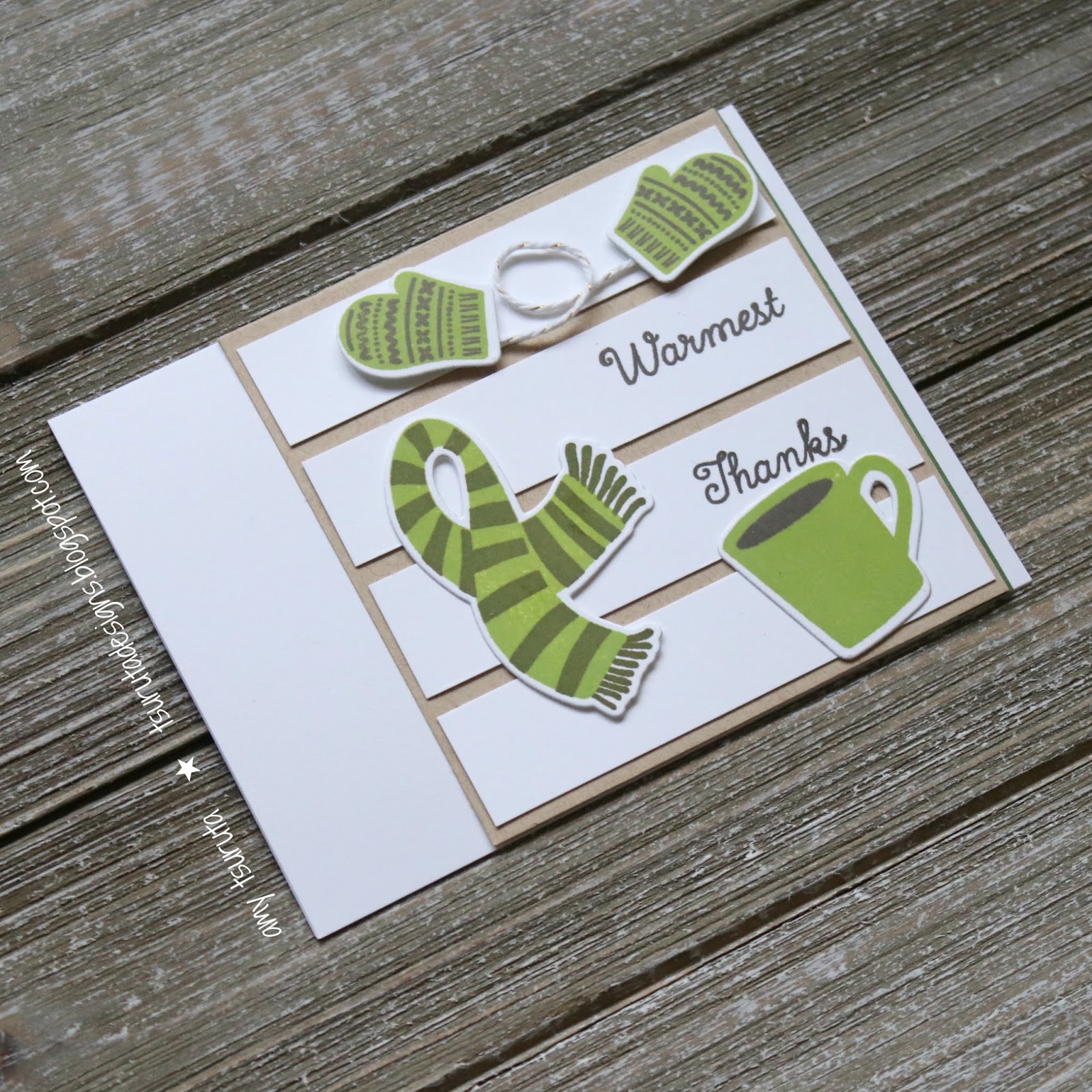 Both of these cards are excellent, Amy! I always fall in love all over again with those MFT mice whenever I see a card with them! I think your design and your gorgeous blending and coloring make this one perfect! I was pleased to also see you cute mittens, scarf, and mug thank you card! It feels so great to use that NBUS!! ❤Hugs, Darnell