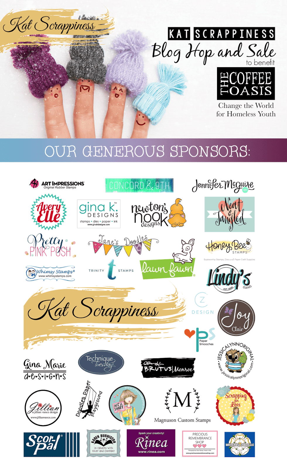 I’m so excited to be a part of the Kat Scrappiness Blog Hop and Sale to benefit The Coffee Oasis!