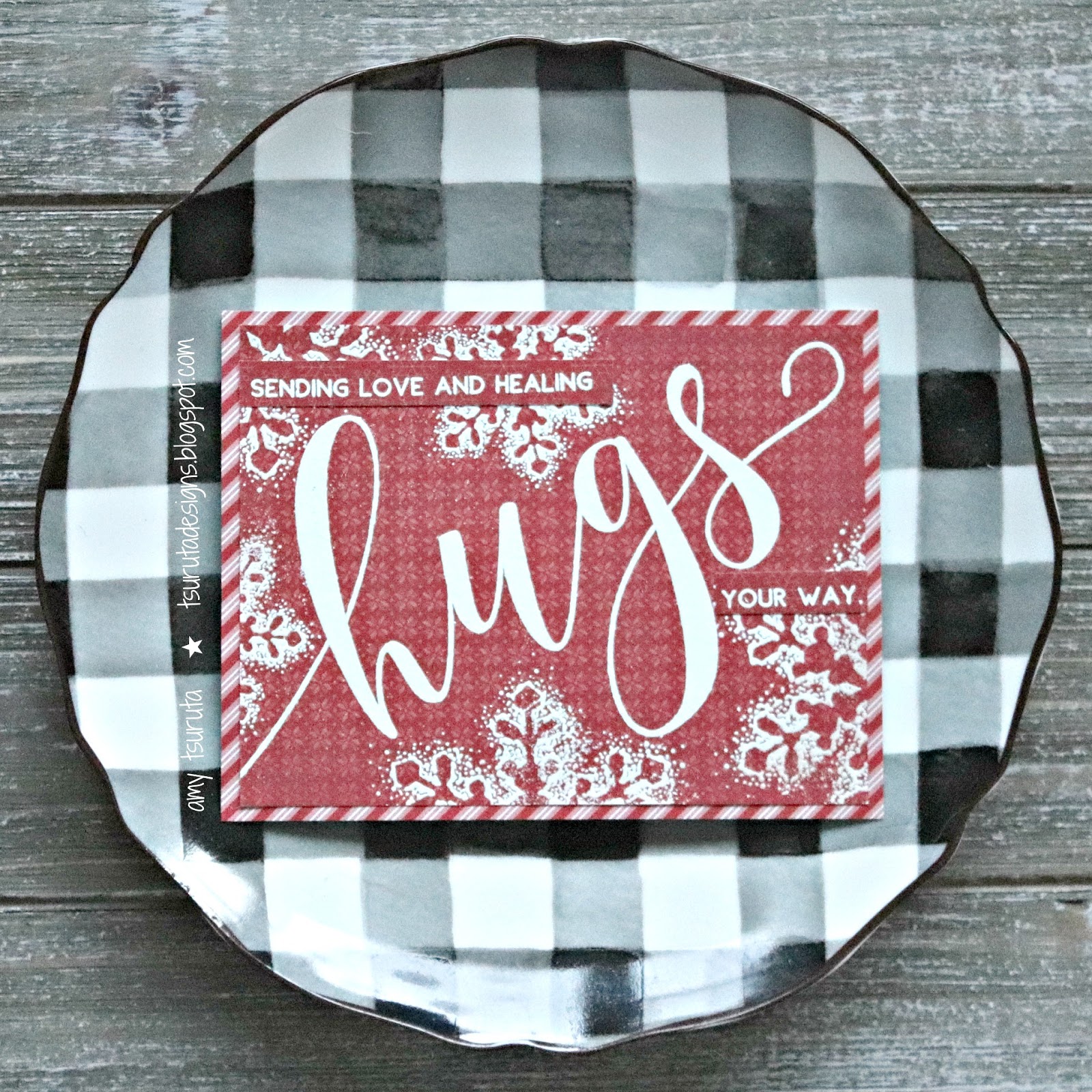 Oh Amy, your card is gorgeous! I love the snowflakes paired with that huge hugs stamp! The red and white color combination is so classy looking!! Thank you for spreading awareness about PTSD!!