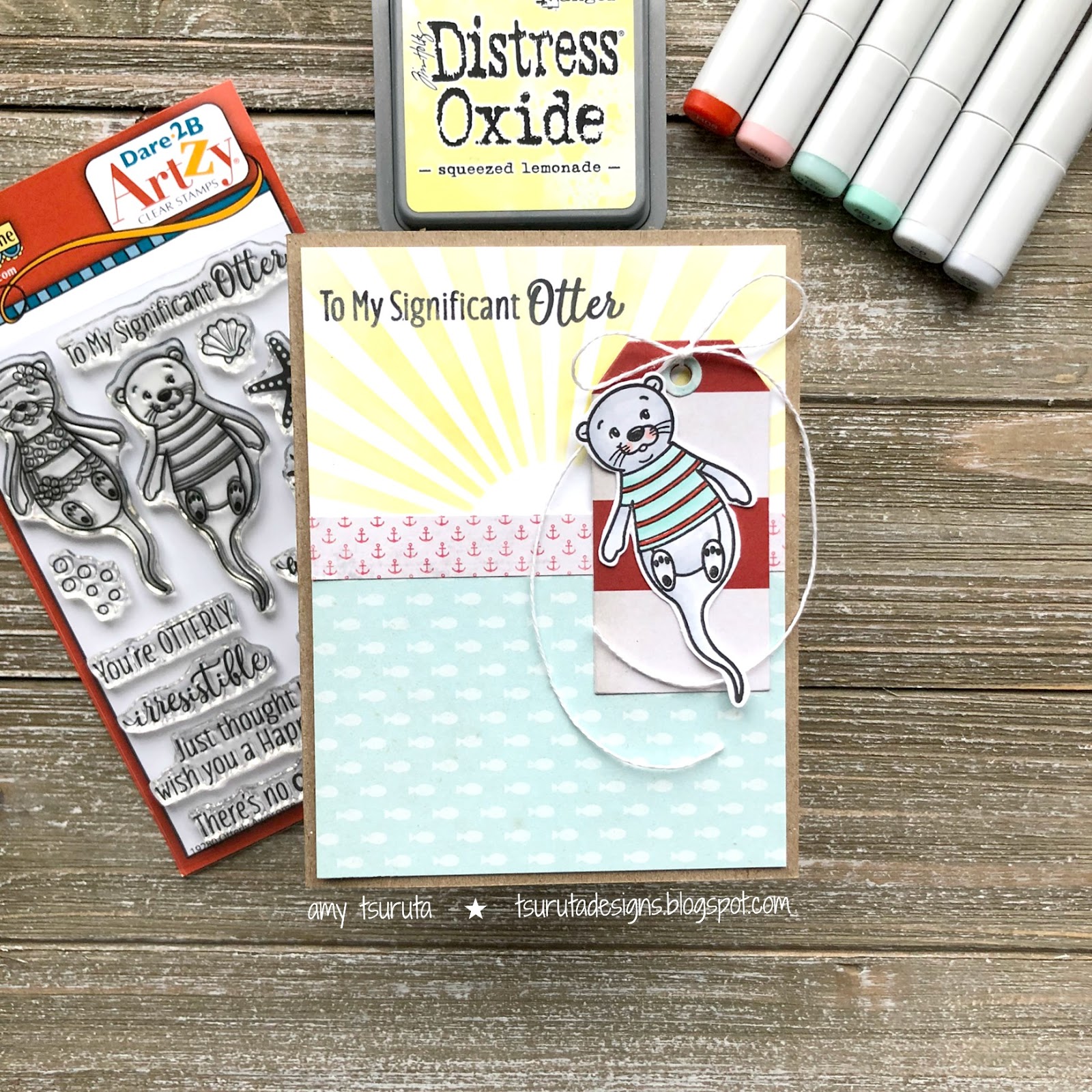 Cute card; those otters are just adorable! Thanks for joining the Dare 2B Artzy April Challenge! -Tasha ☺