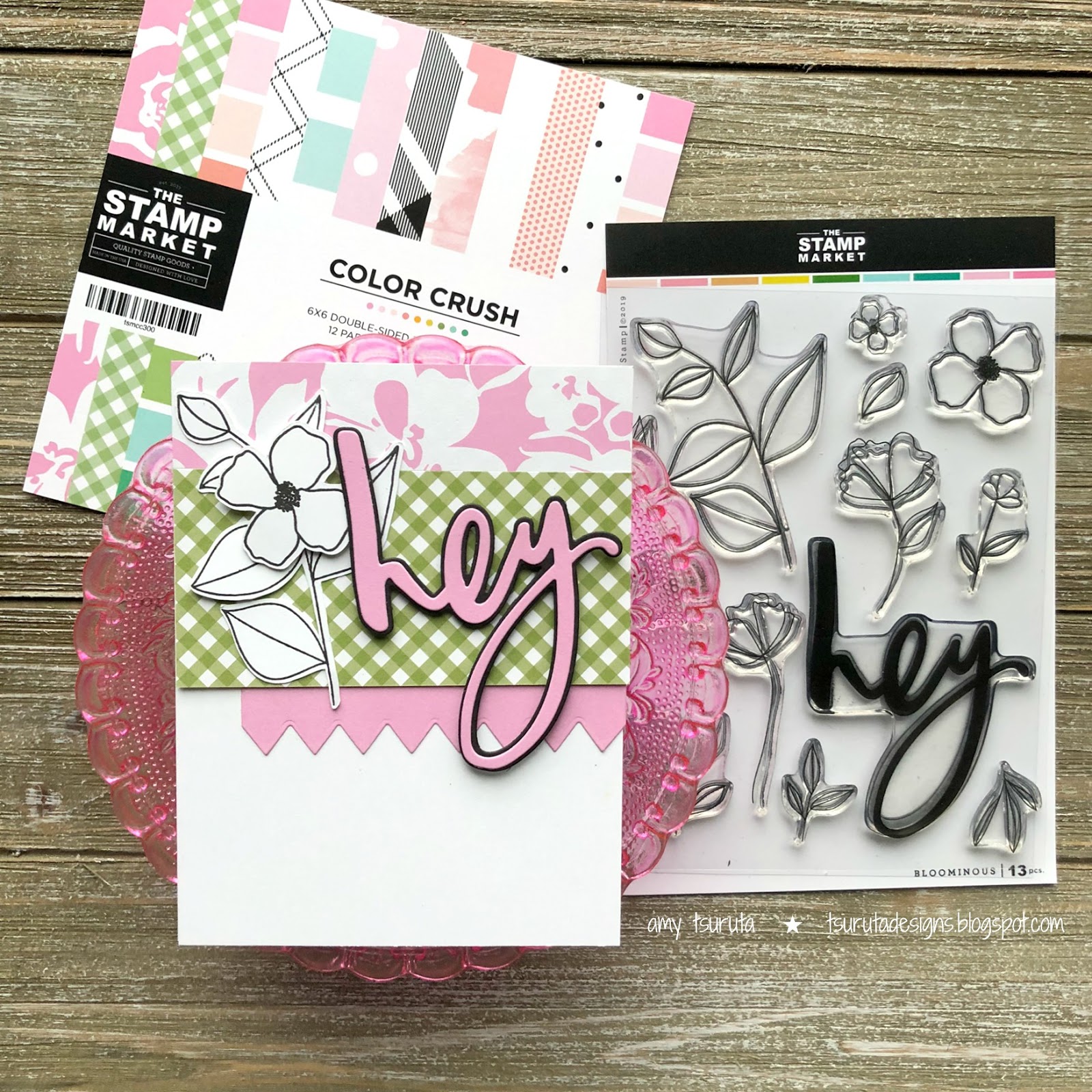 I haven’t played with The Stamp Market’s Bloominous set or their new papers. Have you noticed the trend of non-colored images? I love that look but honestly, I felt like coloring those stamped images.