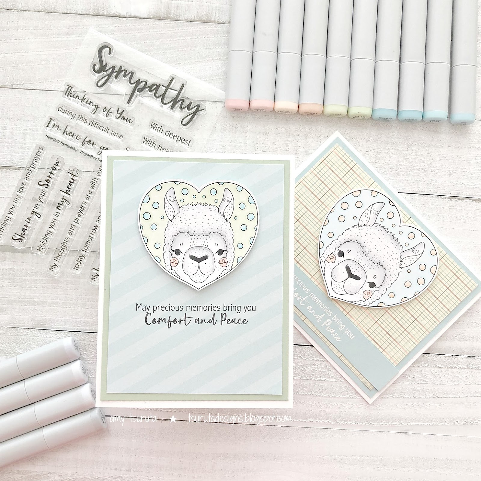 My cousin owns several Alpacas (See Here, Here + Here). She reached out to me last weekend to see if I might design an alpaca sympathy card. A friend of hers had recently lost their rescue alpaca. She picked THIS digital set by Le Petite Market. A couple other cute digi’s jumped into my cart too.