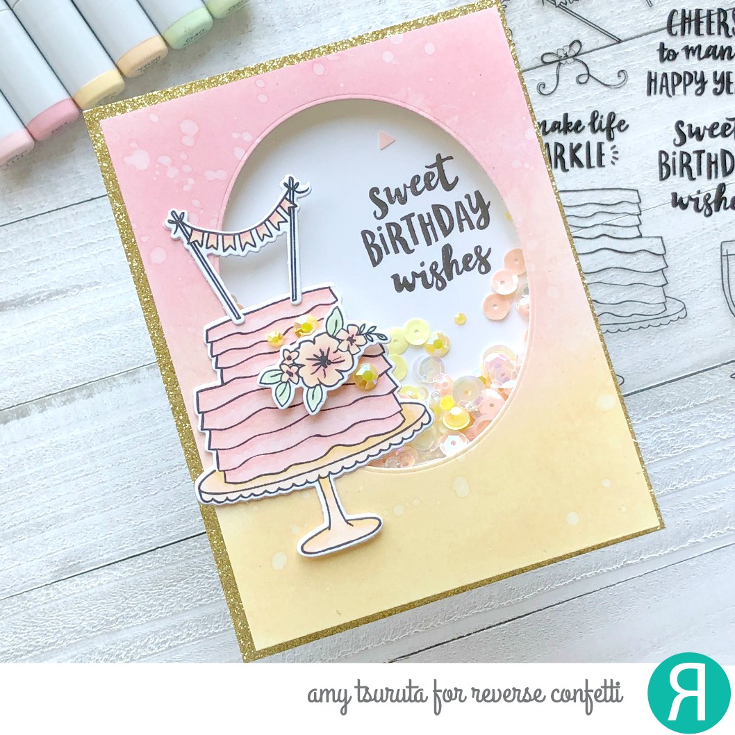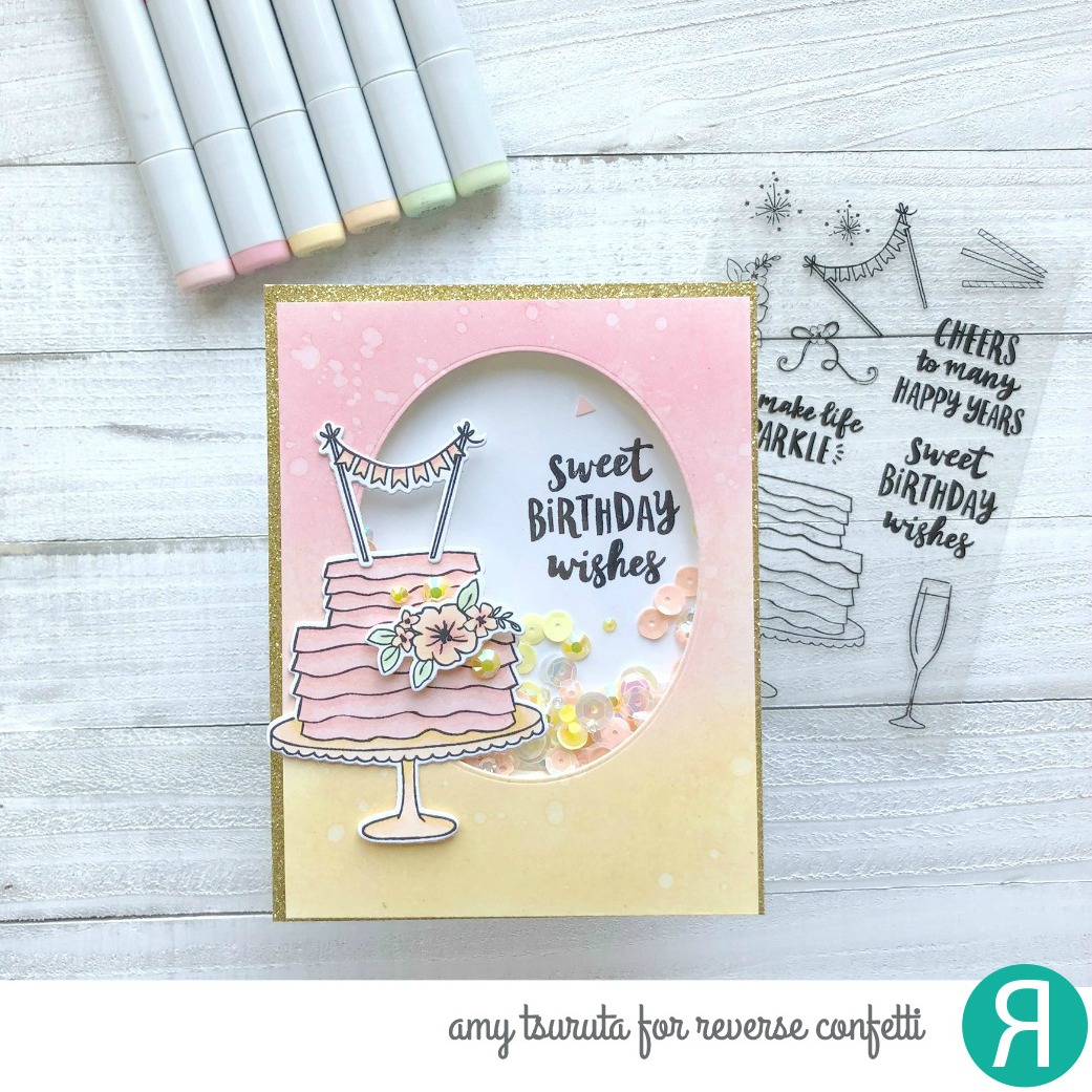 My gosh, this shaker card is so very beautiful, Amy! Love the cake image and your sweet pastel coloring!!