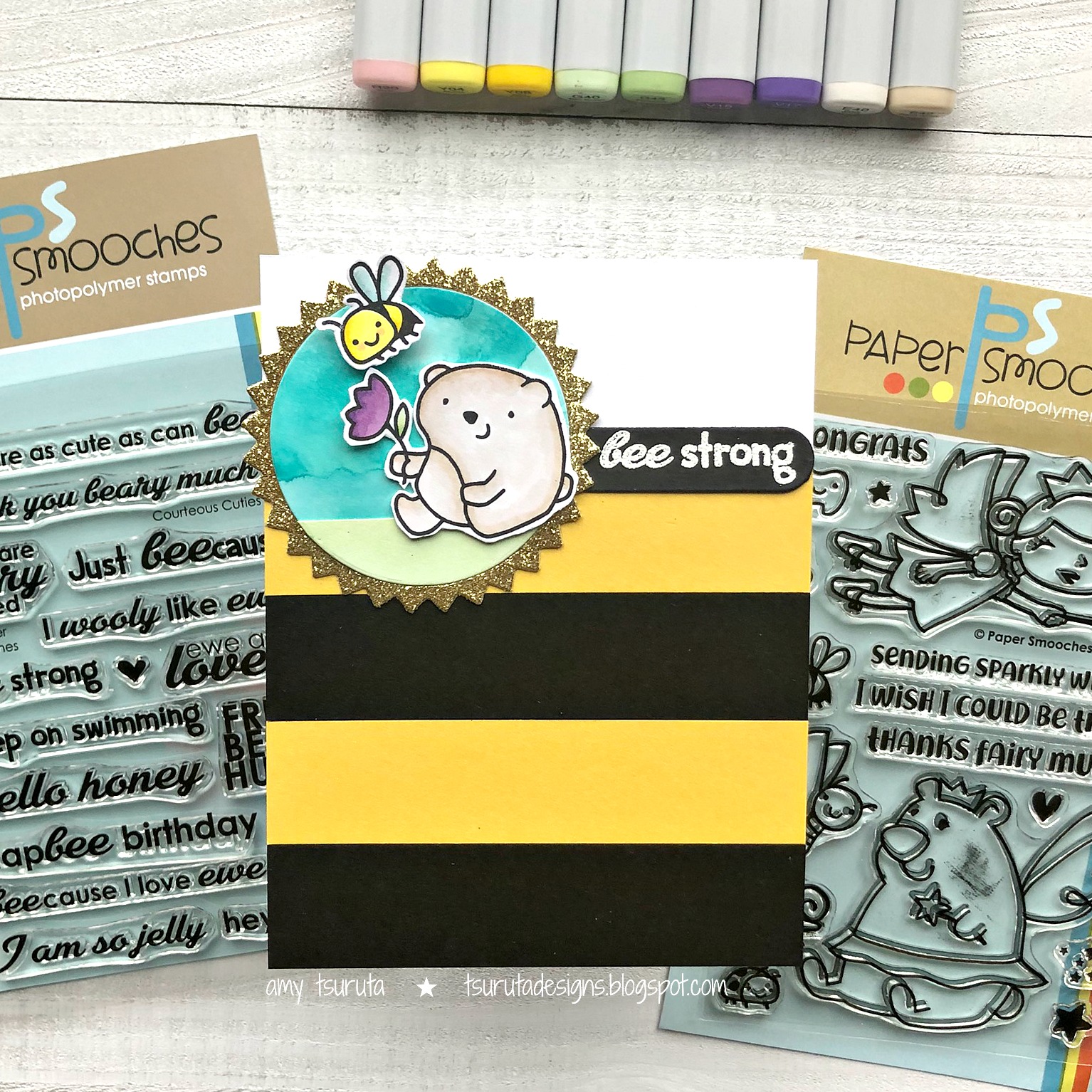 Oh my gosh, Amy! Your card is absolutely adorable, with the darling bear, bee flower and fabulous stripes! Cuteness galore! Wishing you a bee-utiful day!