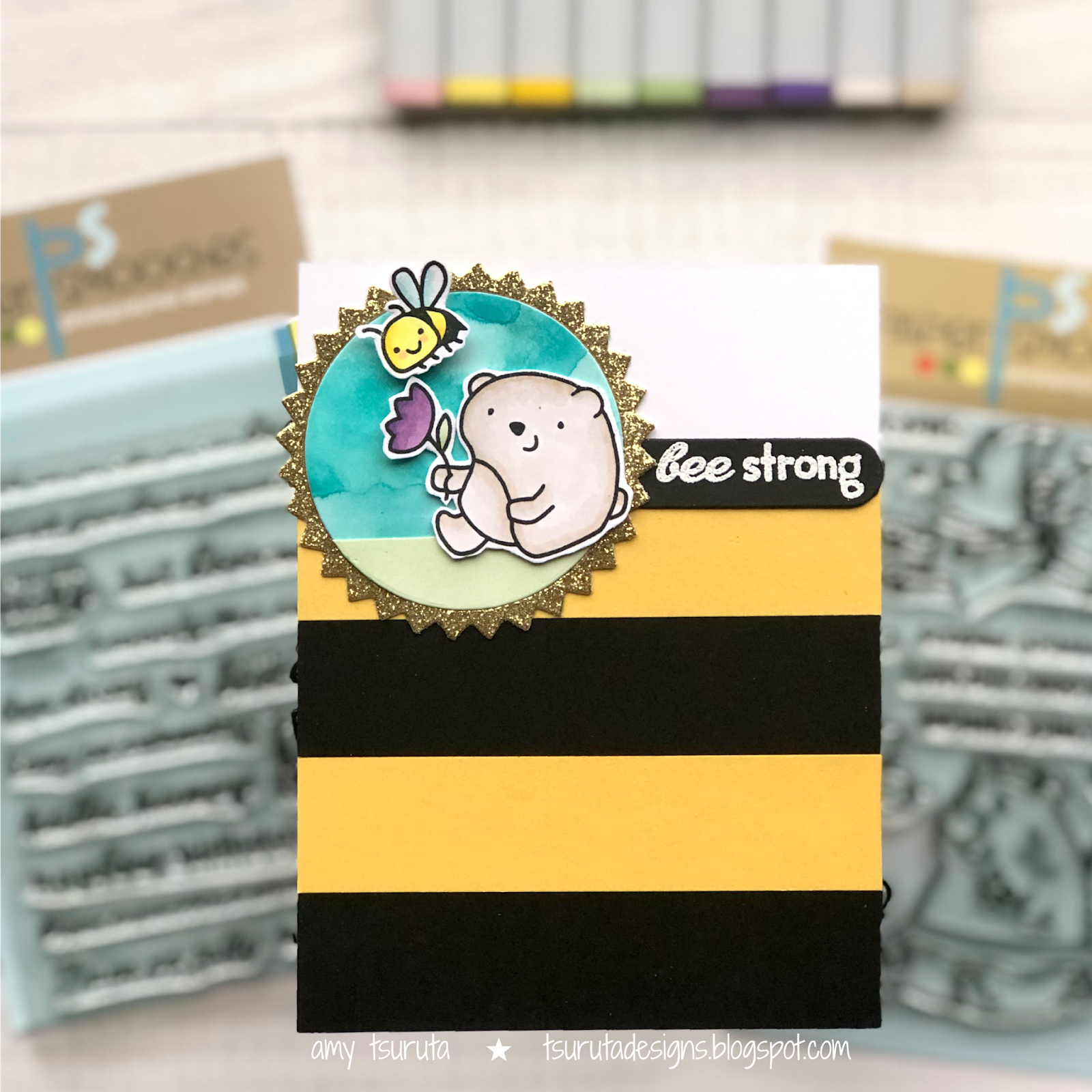 I totally love the Bee Strong sentiment. Adorable striped background. 🐝