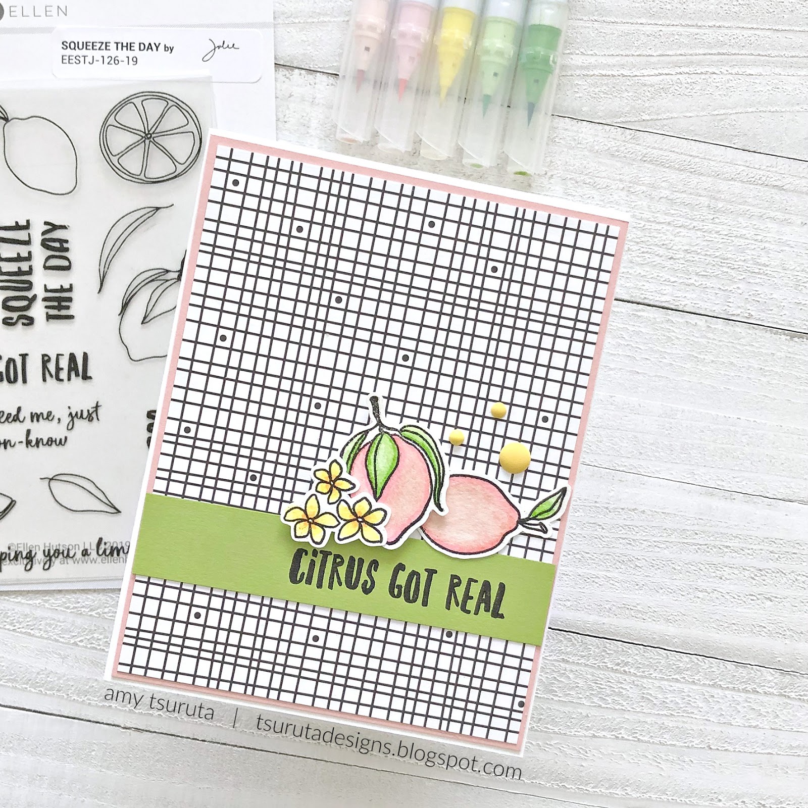 Today I’m featuring the Squeeze The Day set. I was first introduced to Pink Lemons via Blue Apron (Big Fan of their WW meals). Julie is so clever with her sentiments…