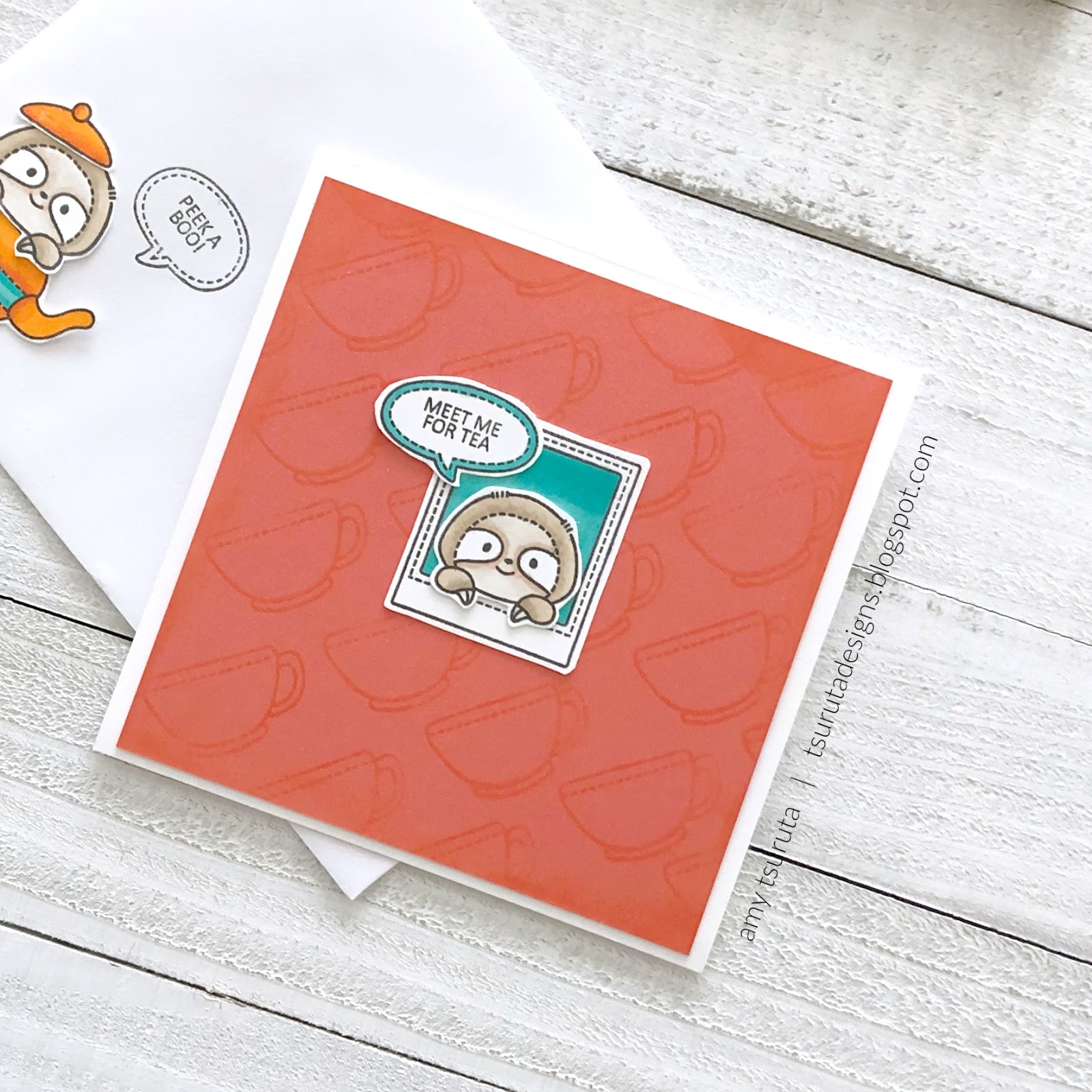 Fabulous card Amy! Love the tone on tone stamped background with that funky angle and how adorably you decorated the envelope too!
