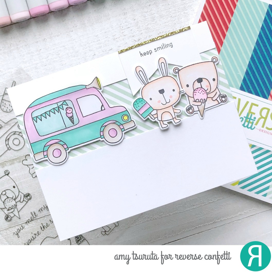 So it seems our pacific northwest weather has gone back to normal. It hasn’t been as warm as it had been a couple weeks ago. I decided to bring the sunshine to my blog with the Reverse Confetti Ice Cream Social set.