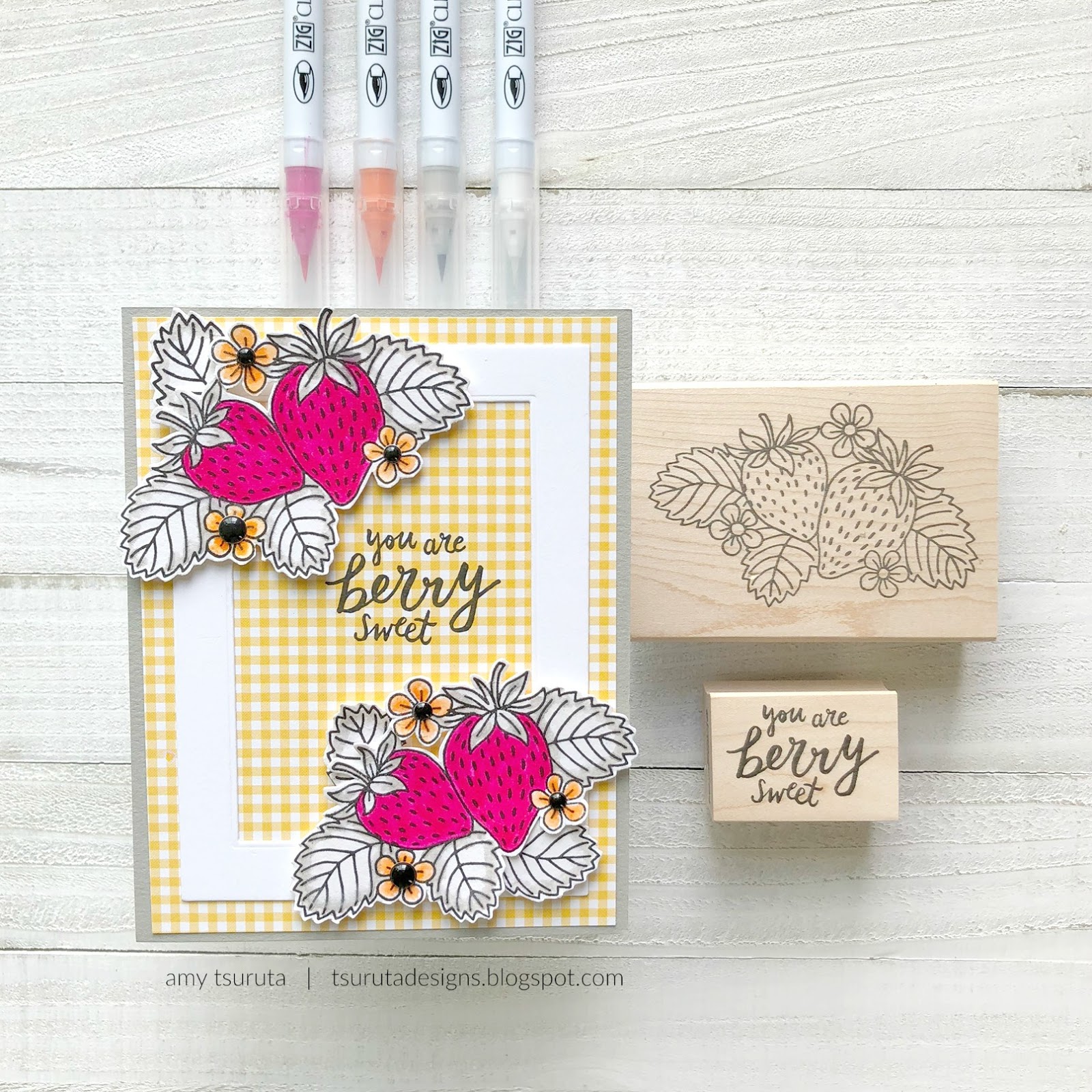 LOVE your Woodblock Wednesday series! No wonder you didn't notice that you used the same strawberry stamp–you took it to a whole new level with the Zigs! 😉