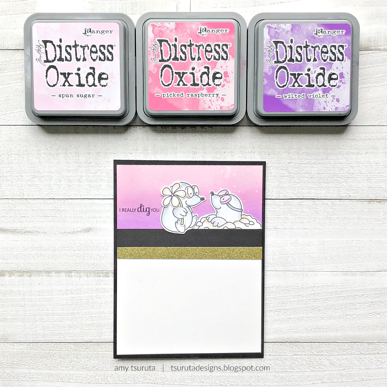 Check out those gorgeous blooms! I was to going to find a pretty pattern paper to go along with it but ended up blending some distress oxides: