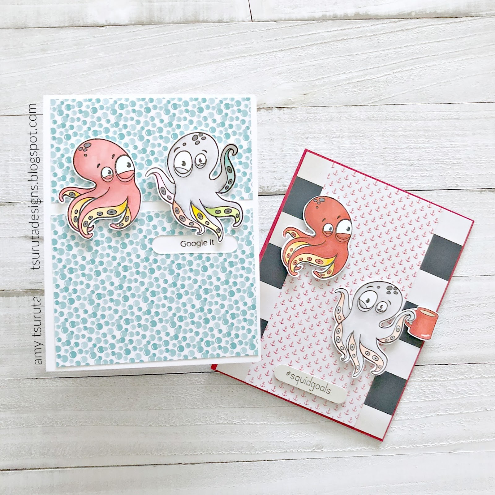 Let’s chat about each card separately. My first card, #squidgoals, cracks me up. Doesn’t every squid want a coffee mug?!
