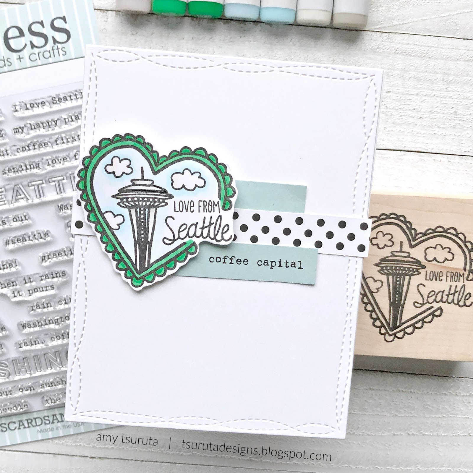 I haven’t forgotten about my Woodblock Wednesday features. I hope to be on a more regular schedule starting in October. Today, I’m sharing a card that uses the fun Love From Seattle stamp by Impress: