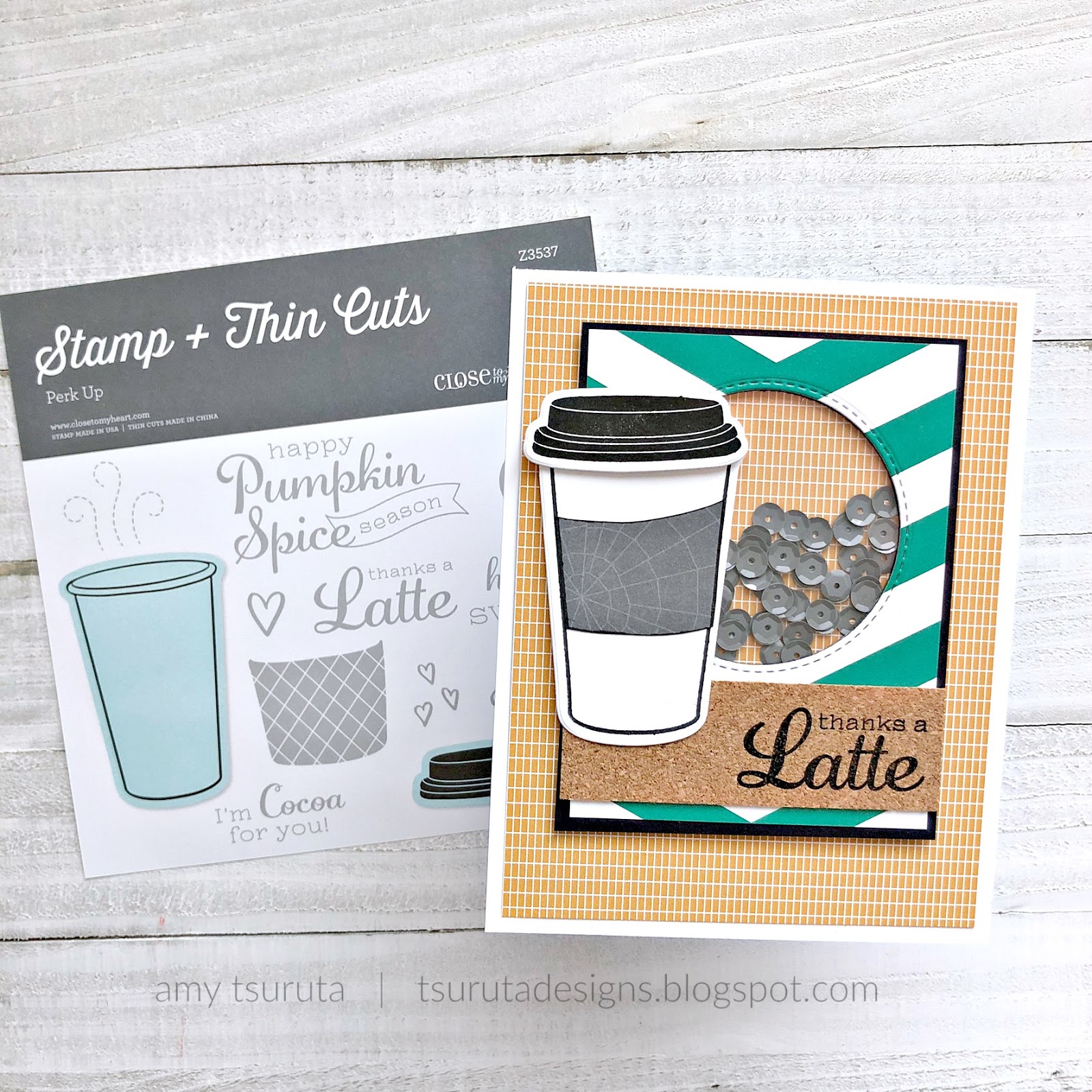 Let’s chat about the Cats & Bats pattern paper and coordinating pocket cards that were on the CTMH clearance [sorry, they’re sold out now] for only $5. That star strip was the label part of the 12×12 paper. I’ve managed to snag several awesome deals over the last couple of years. Definitely worth it to watch that particular section on their site. The coffee cup sleeve was stamped in a stone ink and I embellished it with a pumpkin brad that I had in my stash. I’ve been enjoying adding teal to my fall color combo.