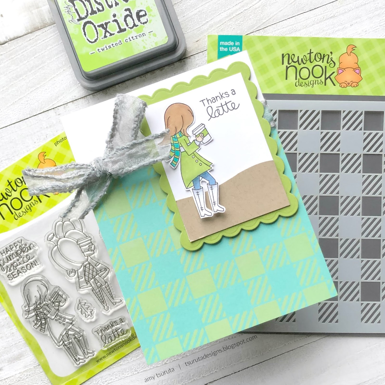 your little latte gal is adorable, but that gingham stenciling has really caught my eye – gorgeous color combo, amy!