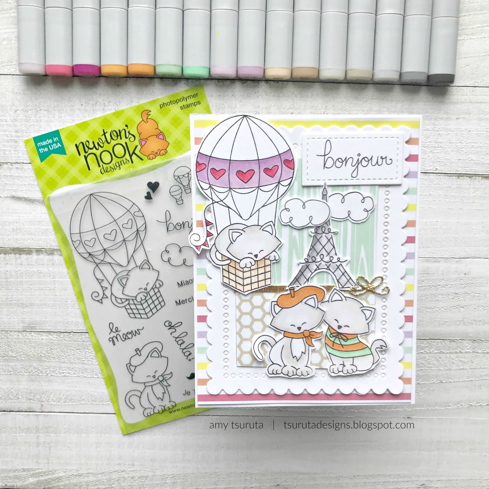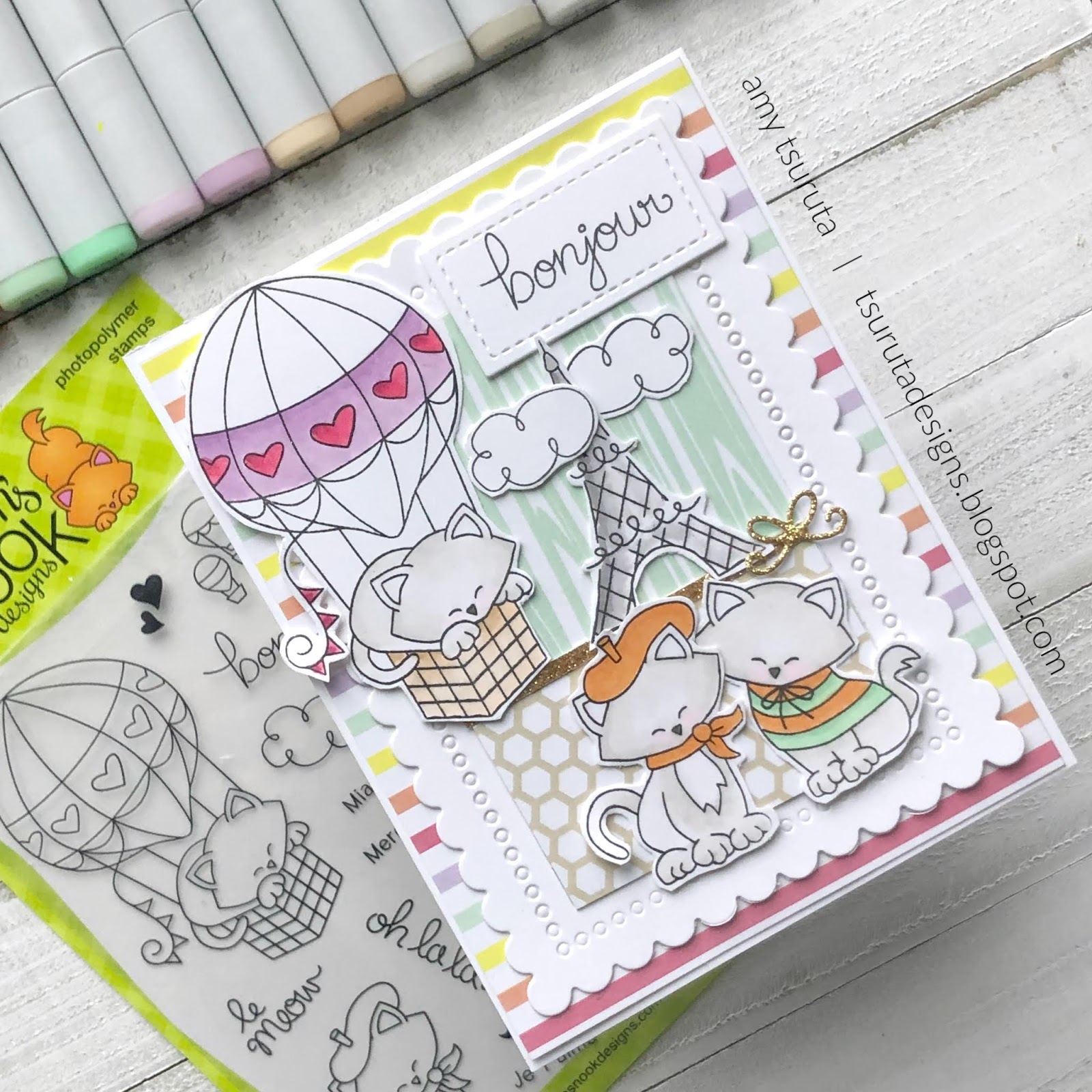 What an adorably sweet take on the sketch Amy! Love the colors, those cute French kitties, and that fun pop of glittery gold!