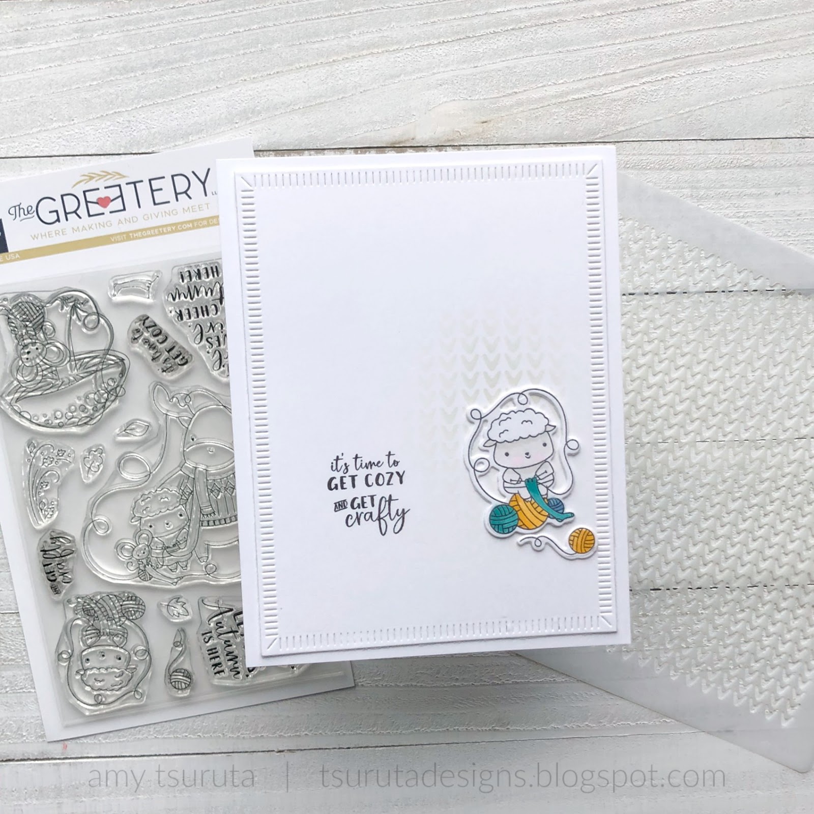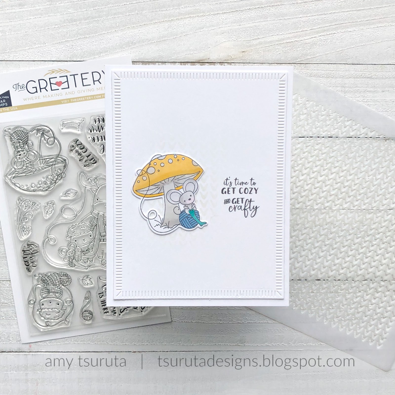 I’ve mentioned that I’m a bit behind on my purchases. I was super excited to ink up some of The Greetery that has been patiently waiting to be used. This card duo features their: Katie’s Cuties: Gettin’ Cozy Stamp Set