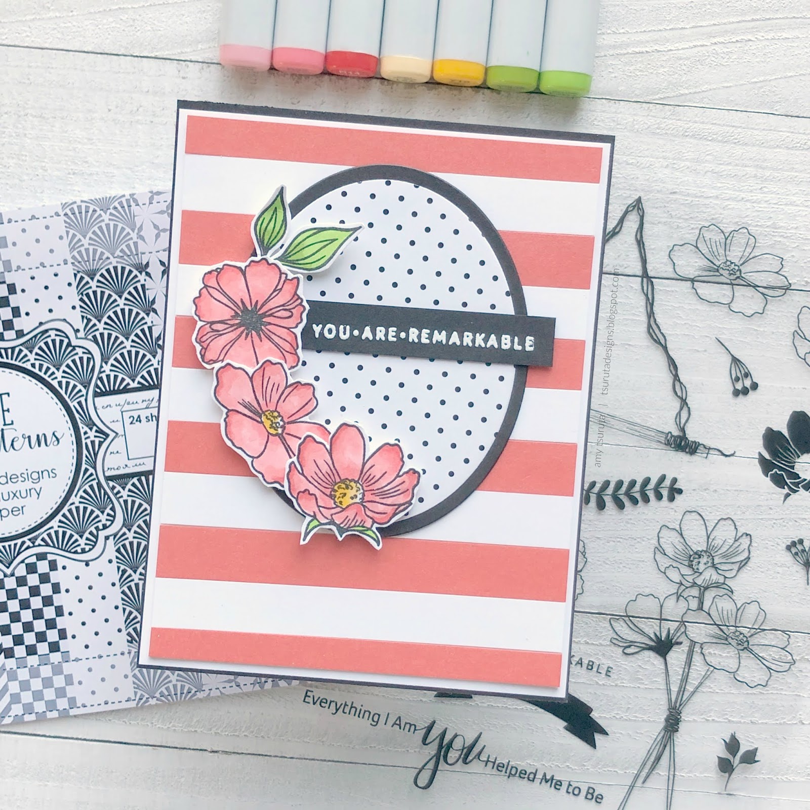 I used the same overall color palette for both of my cards. Let’s chat about my first one, You are remarkable.