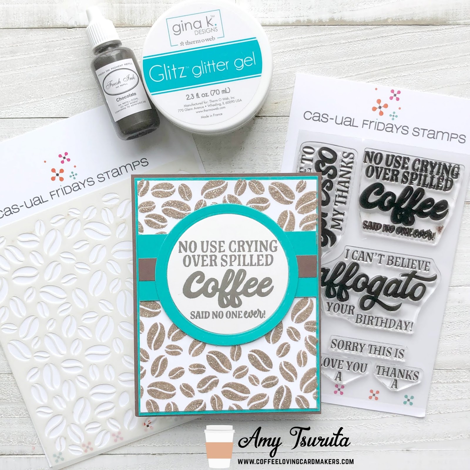 You can’t really tell but those stenciled coffee beans are GLITTERY and add so much texture to the overall design. Don’t you love the sentiment, it’s from the Coffee’isms set.