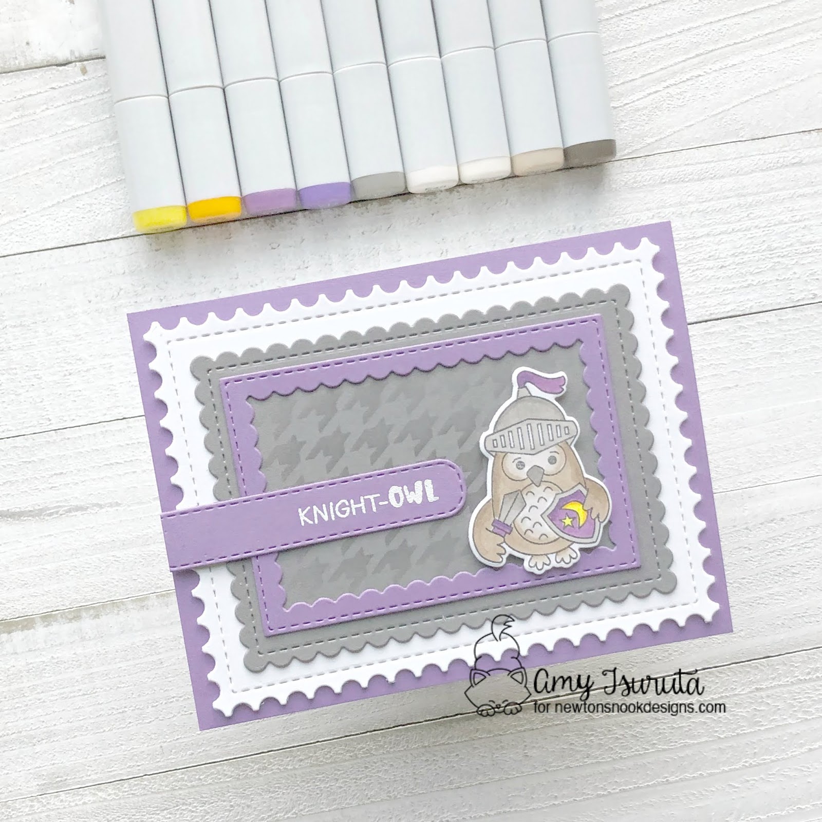 Love the unique purple, orange, & gray color combination on both of your cards & the use of the houndstooth stencil to create a subtle background for the Pug-kin & Knight-owl stamps!