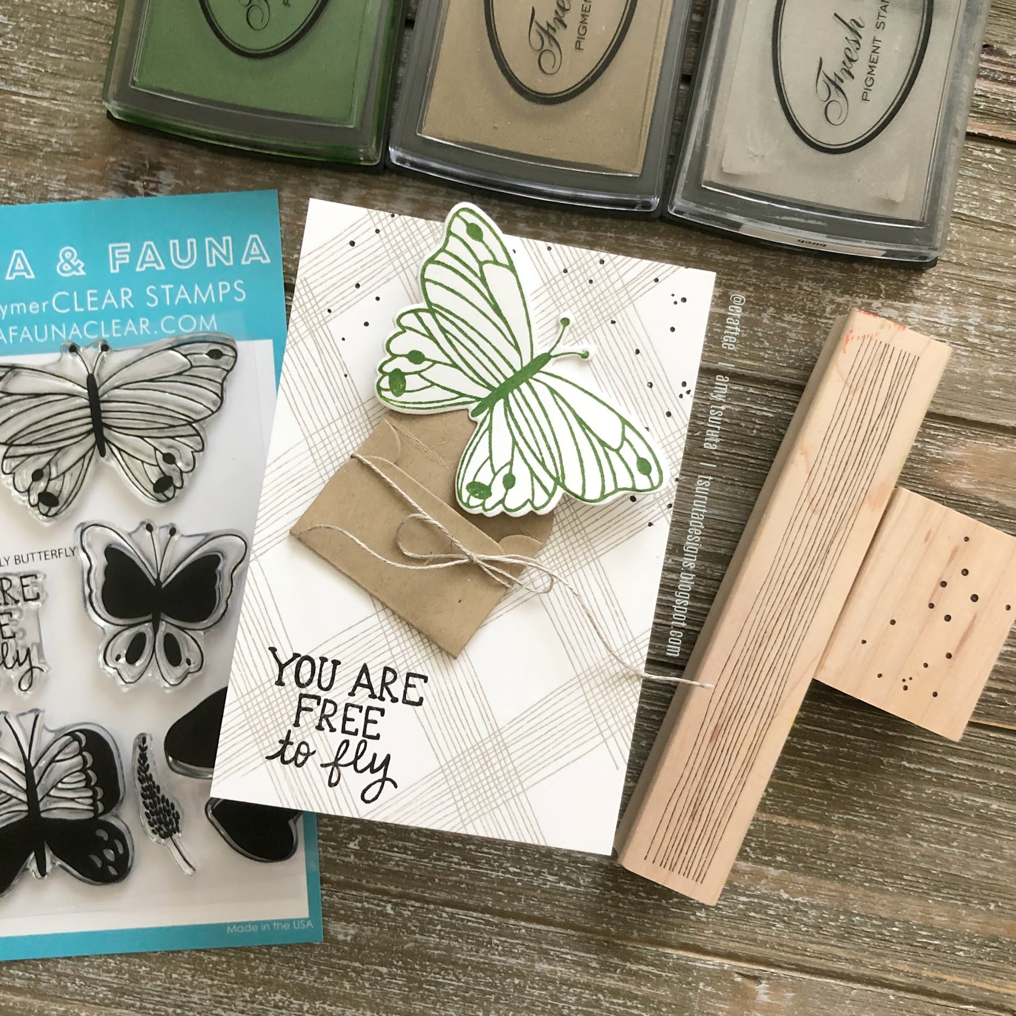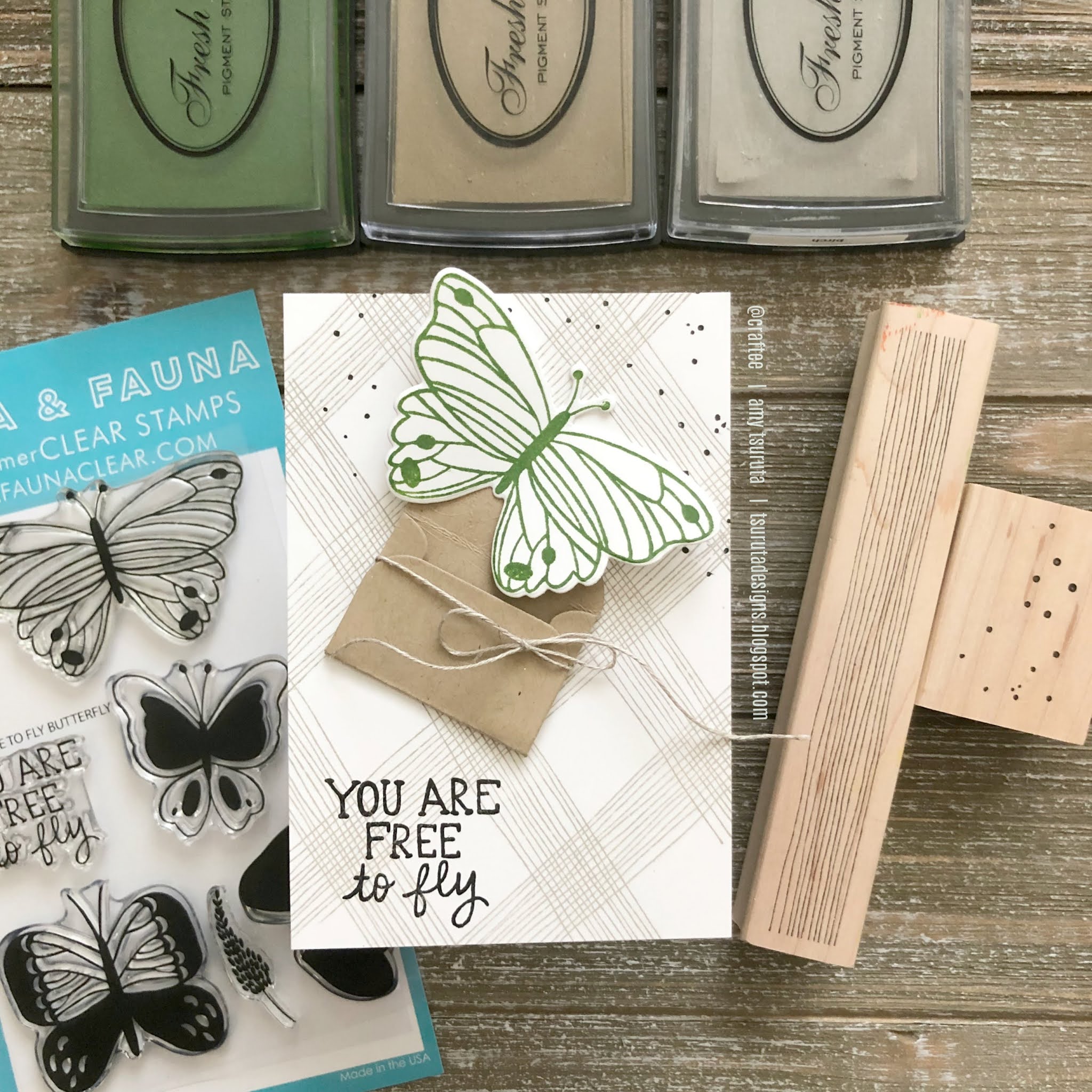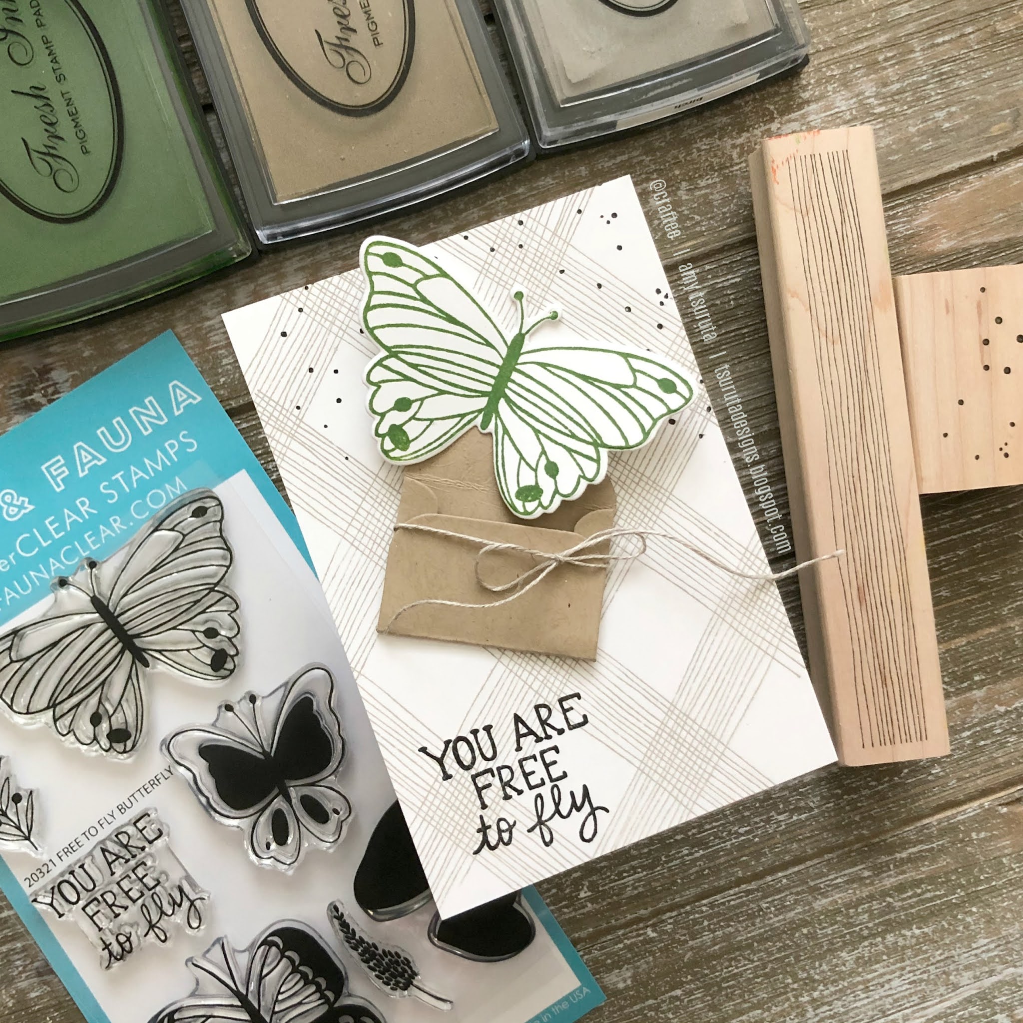 Do you follow Flora & Fauna’s IG? It is FILLED with amazing inspiration! I’m sharing a card that features their Free to Fly Butterfly set along with their Mini Envelope die: