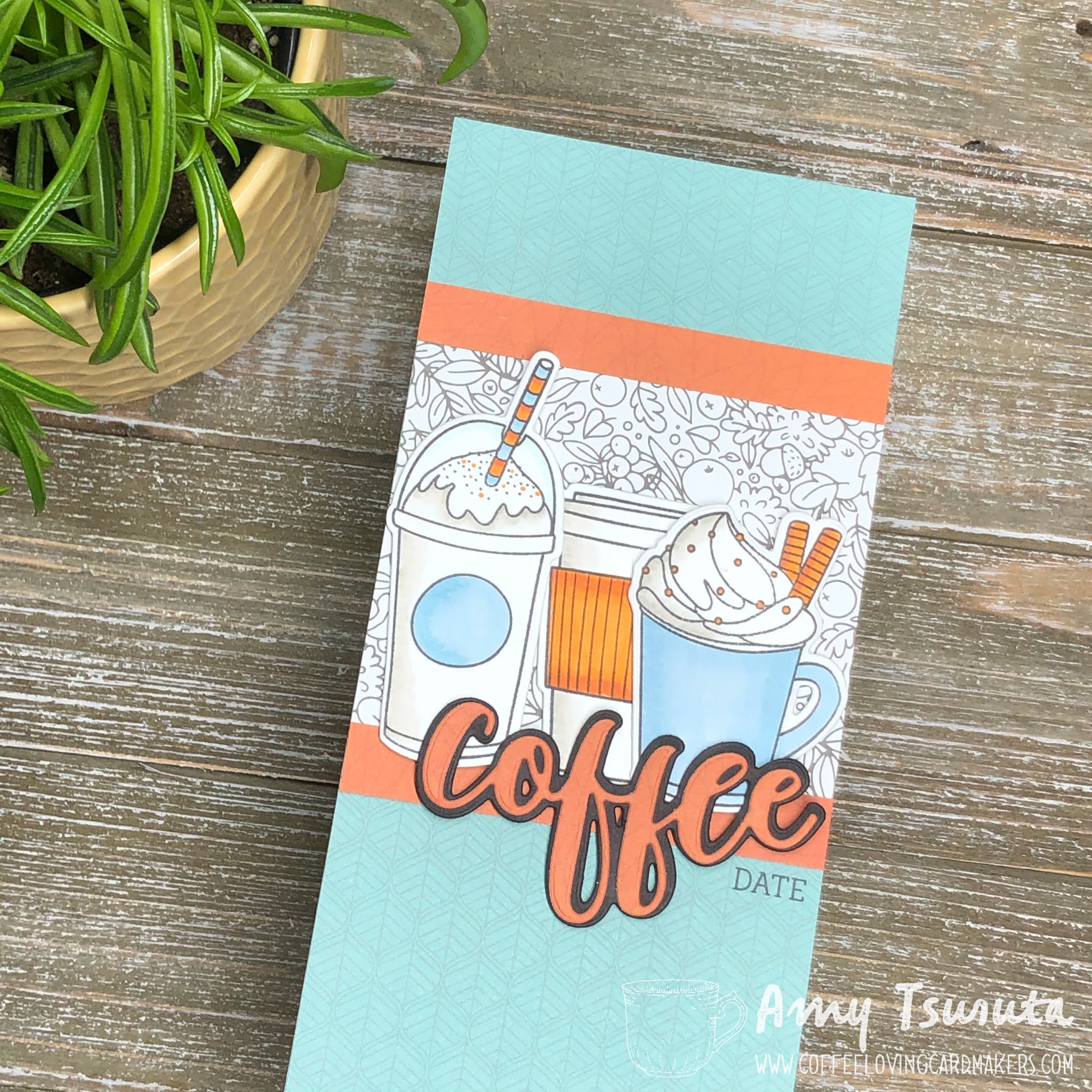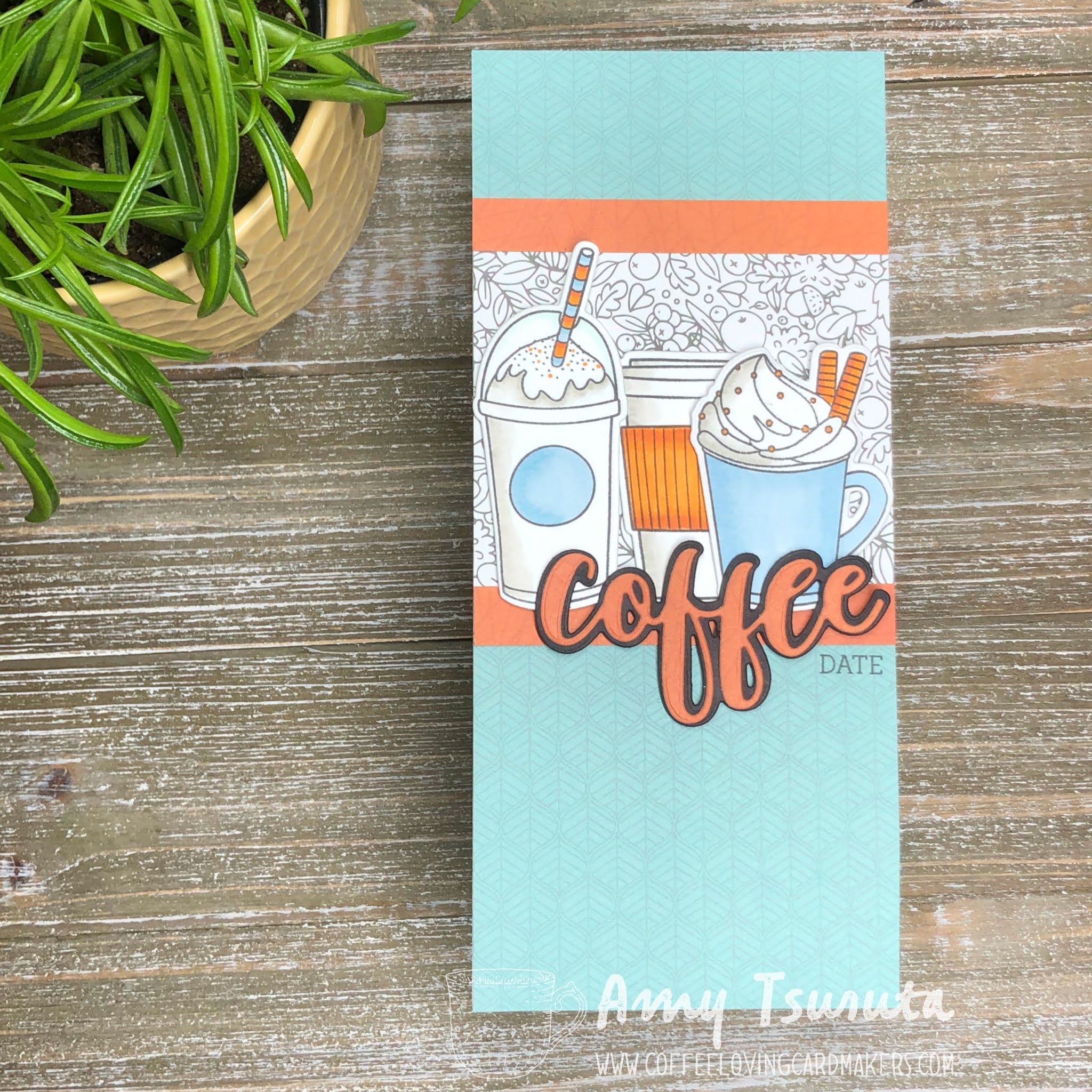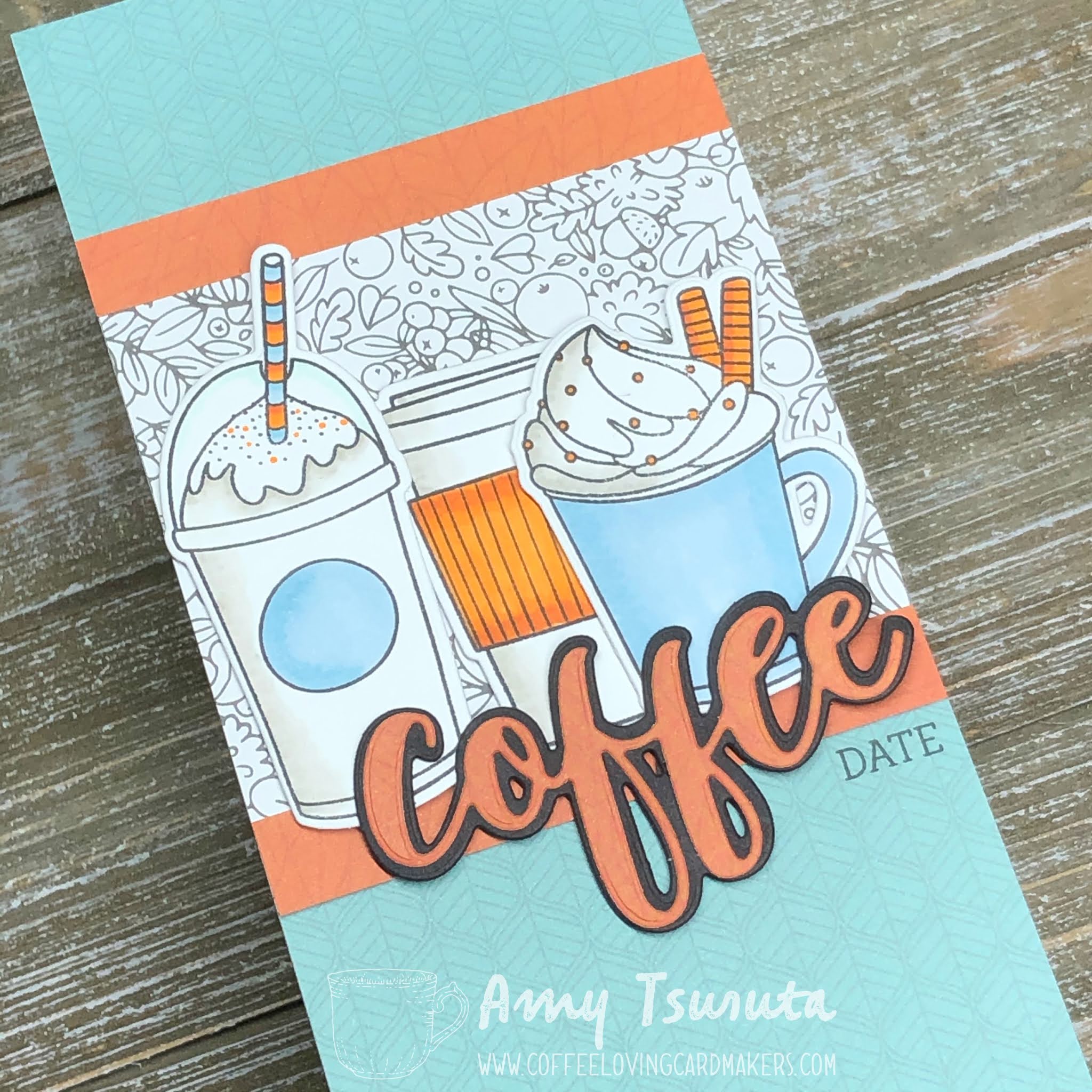 Love the coffee and fancy drinks! Great images and beautiful color combo for your card!