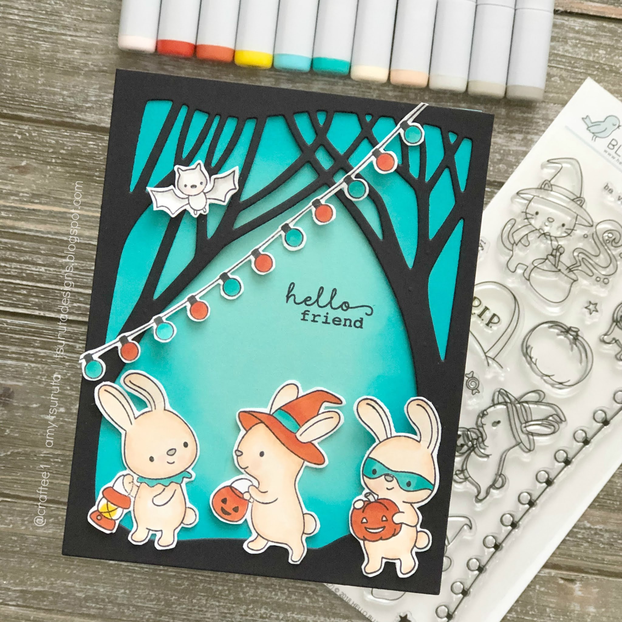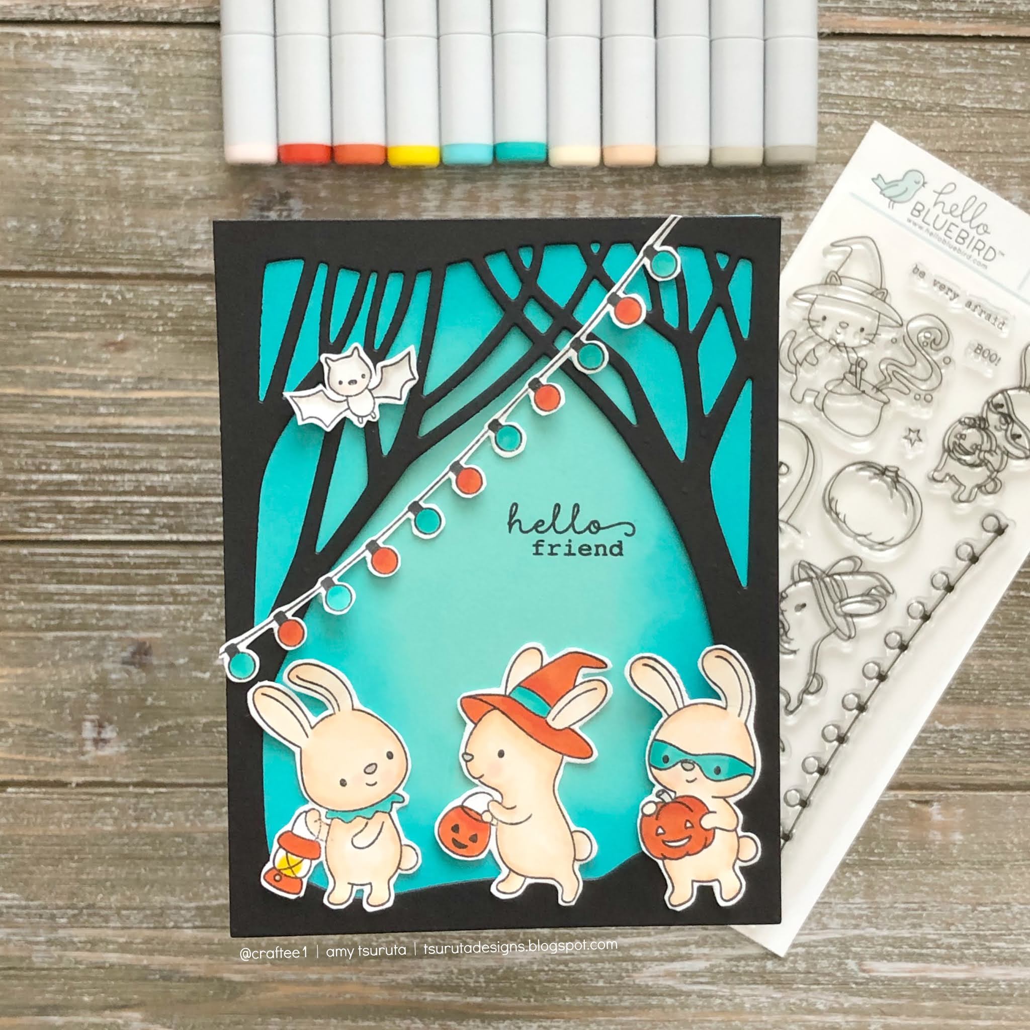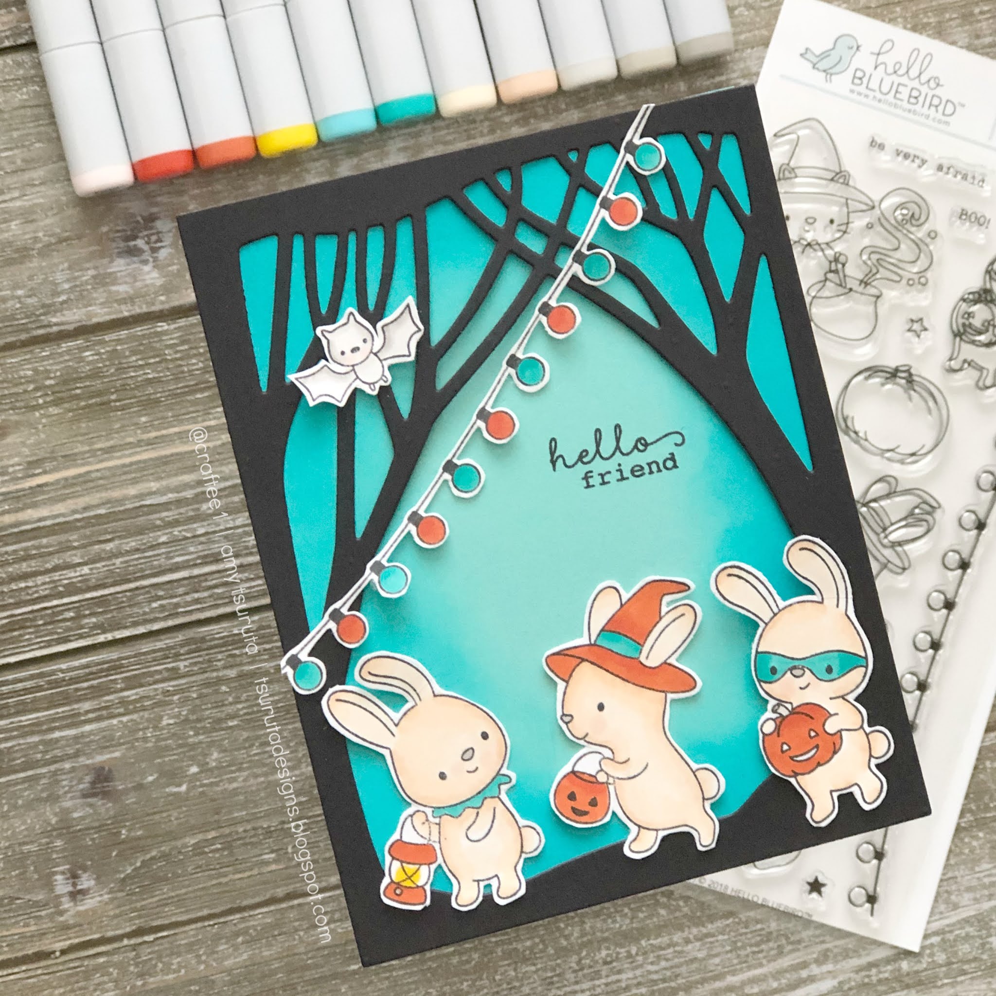Although I have a ton of fall | halloween cards to send out today, I couldn’t resist another Halloween design. This one is with the Hello Bluebird, Halloween Party set.