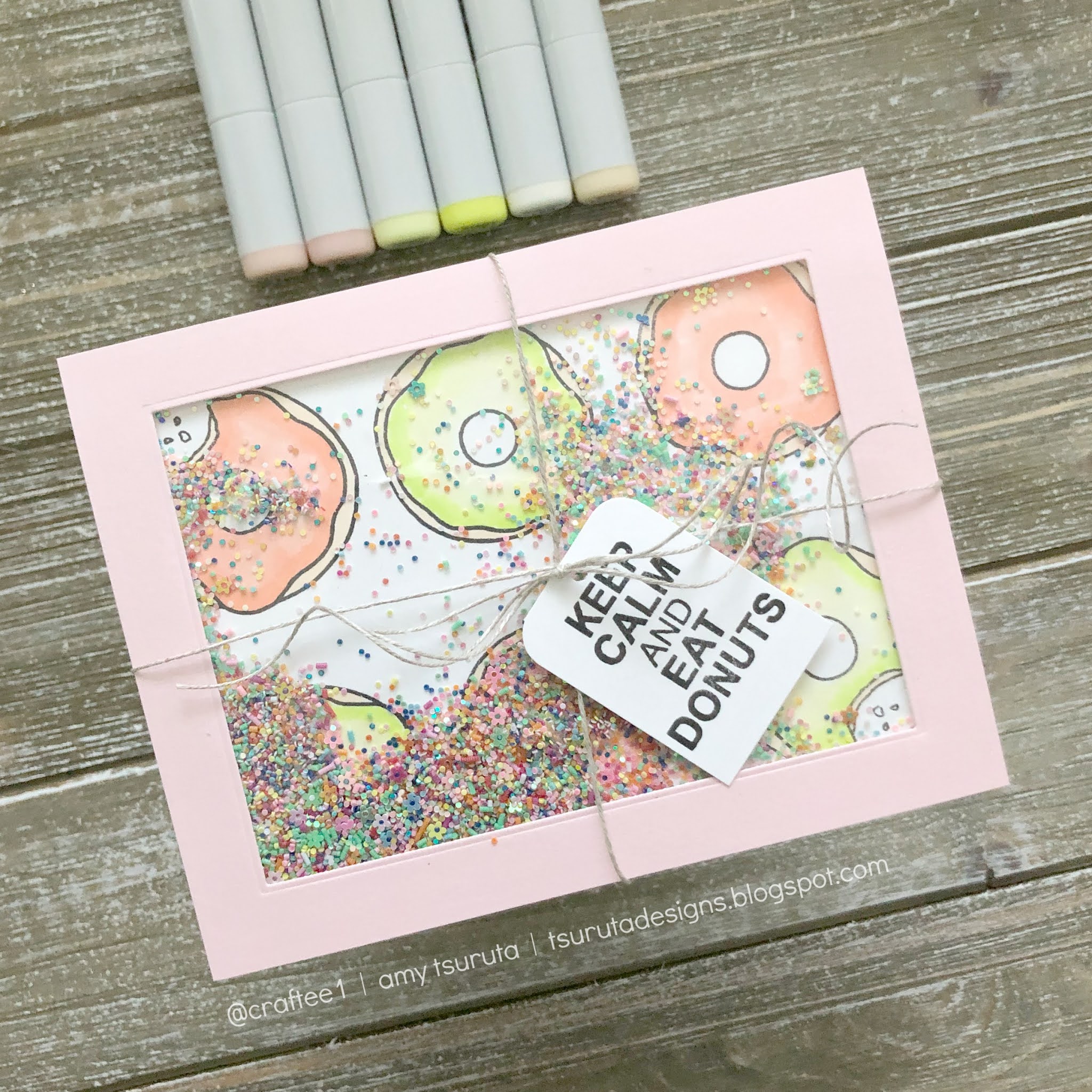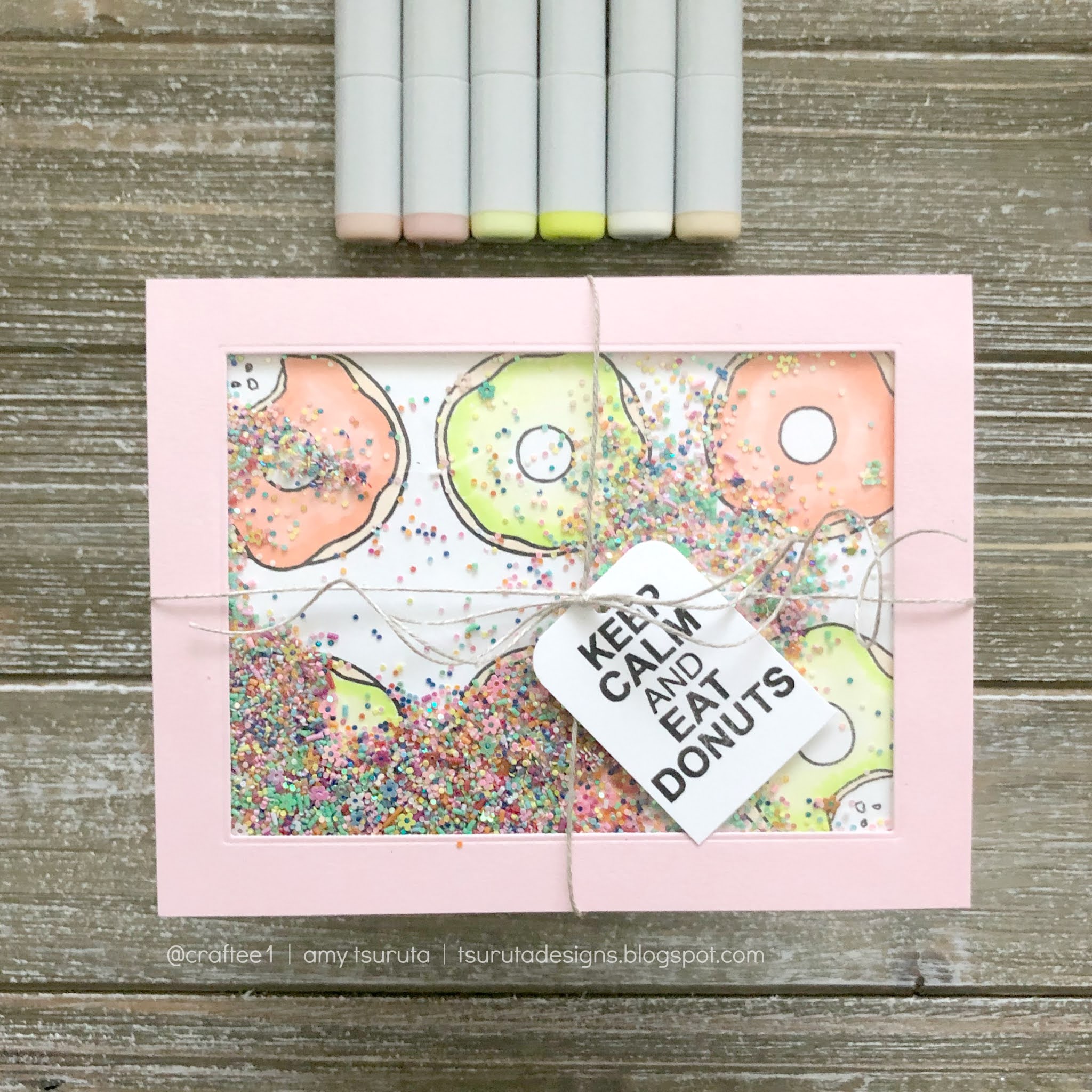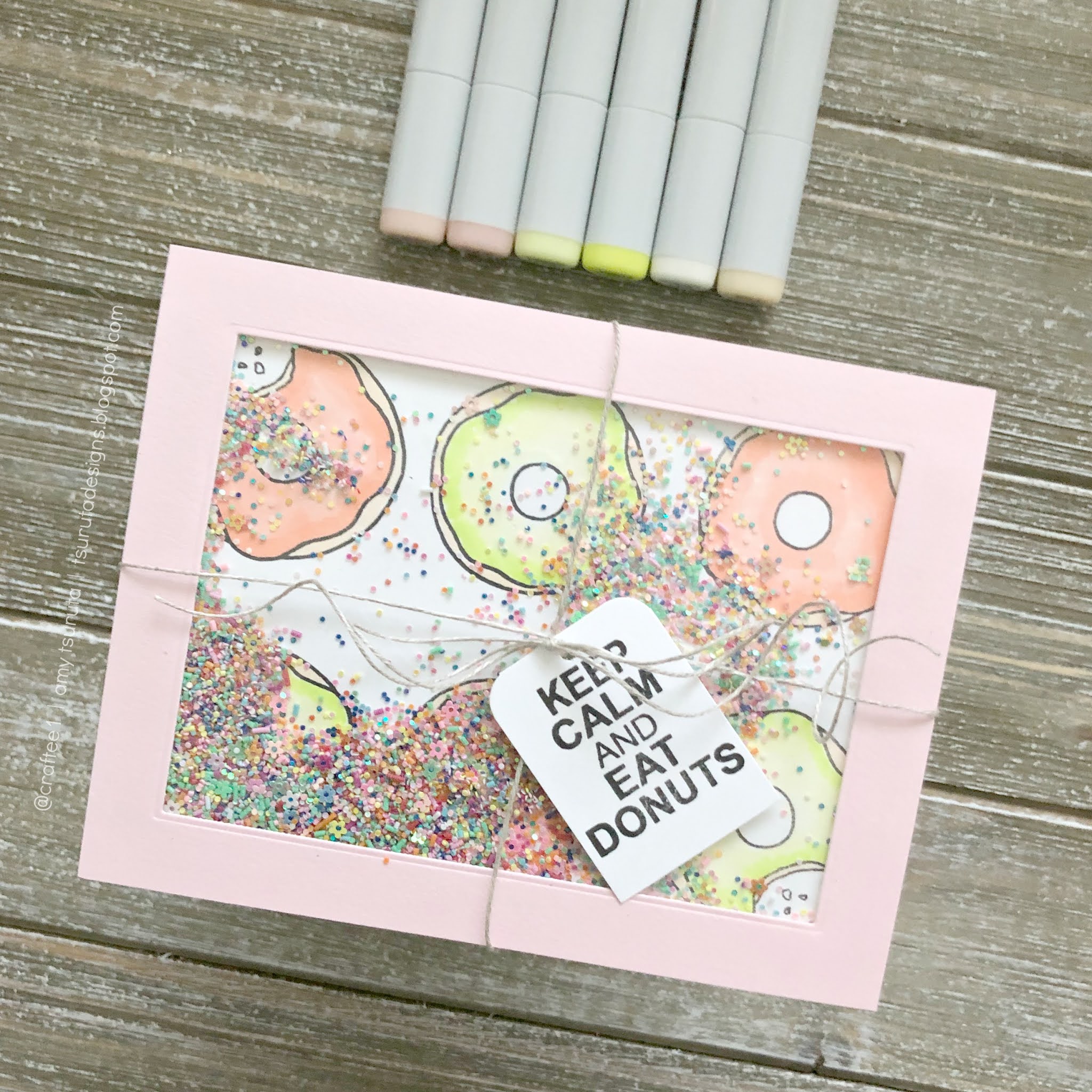 I know, I’m super surprised too. No coffee on this one. I saw the donut cookies and instantly thought of a box of donuts. The stamp set I used is Jane’s Doodles DoNUTS which unfortunately looks like it is retired.