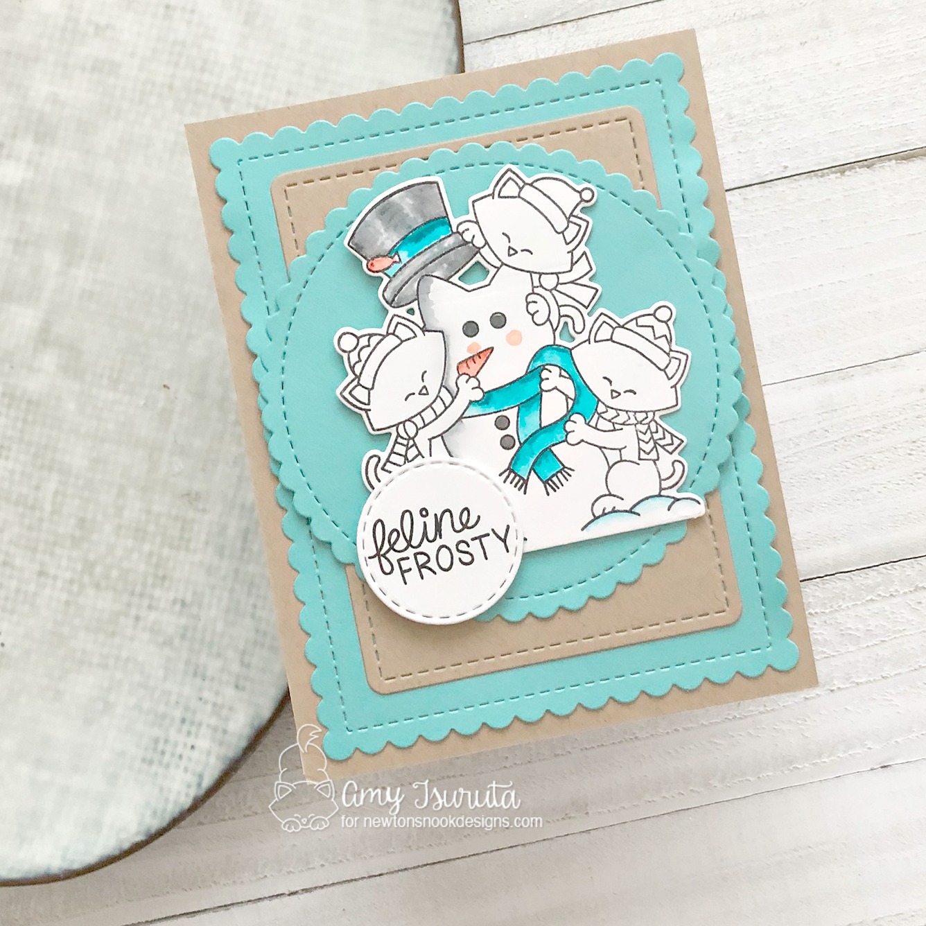 Love the polk-a-dot background on the New Year card and the 3 white kittens using the new stamp – as I am terrible at coloring – so white works for me! LOL – TFS beautiful work Amy!
