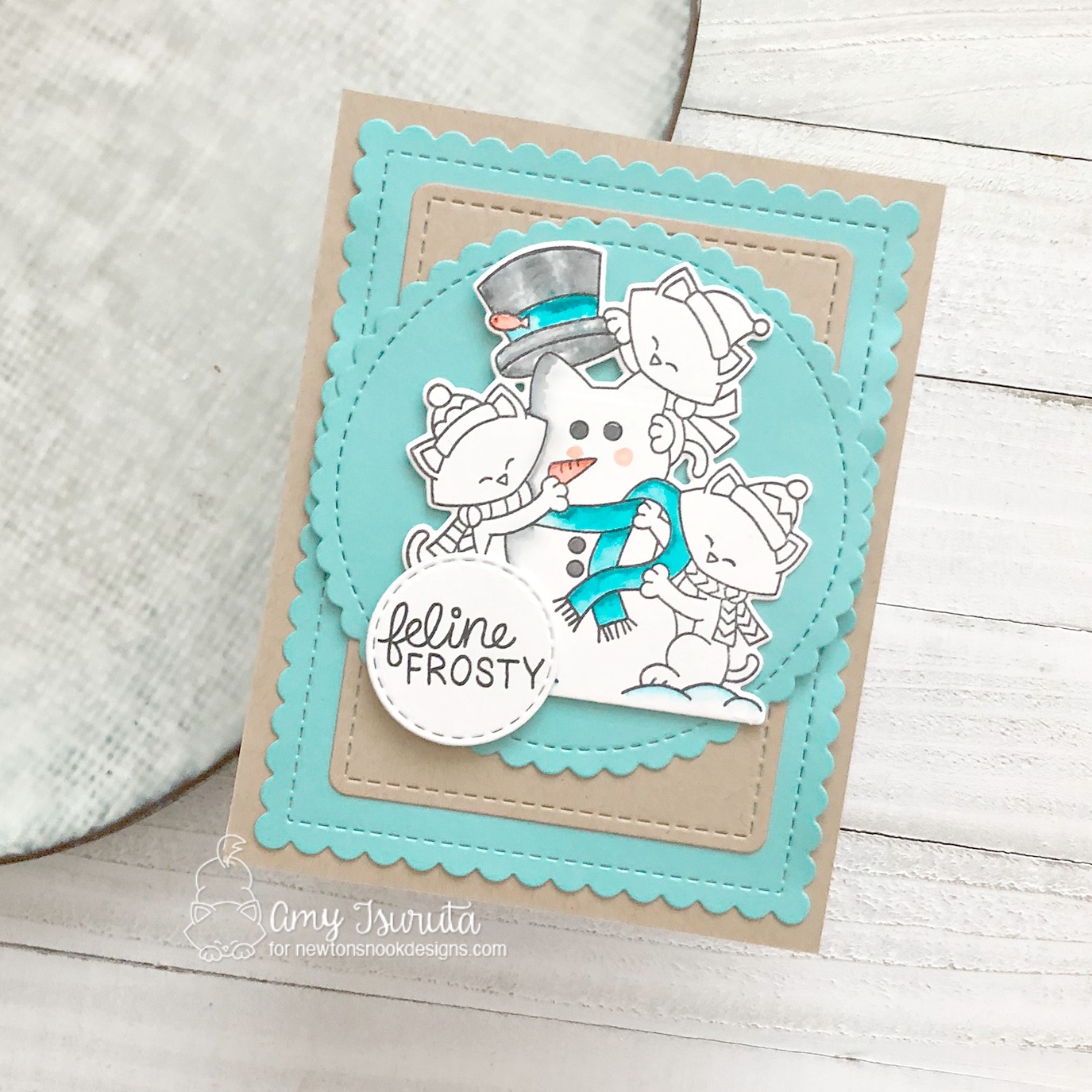 Love the aqua & gray color scheme on your Newton’s snowman card! The simplicity of your New Year’s Card with the embossed white on black sentiment is so pretty!