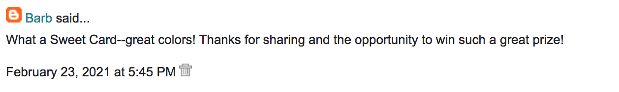 What a Sweet Card–great colors! Thanks for sharing and the opportunity to win such a great prize!