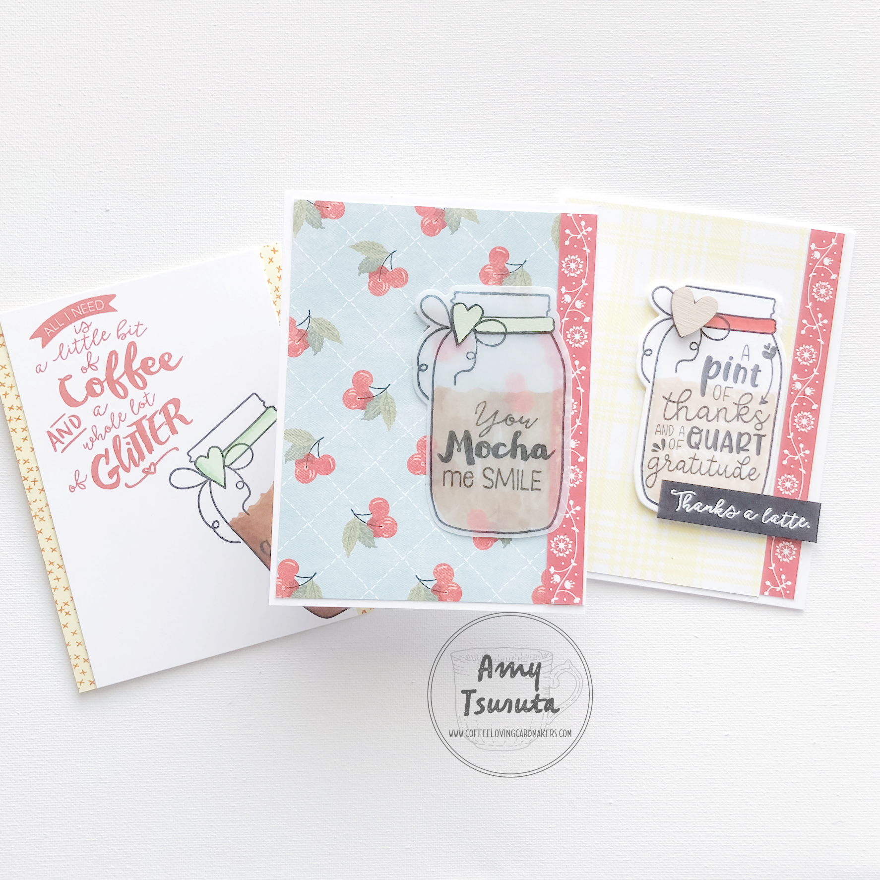 3 Sweet cards using the mason jar images! Great cherry background especially! That one was my fav! Thank you for hosting these fun blog hops!! I so look forward to them!
