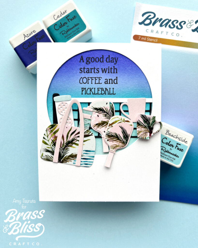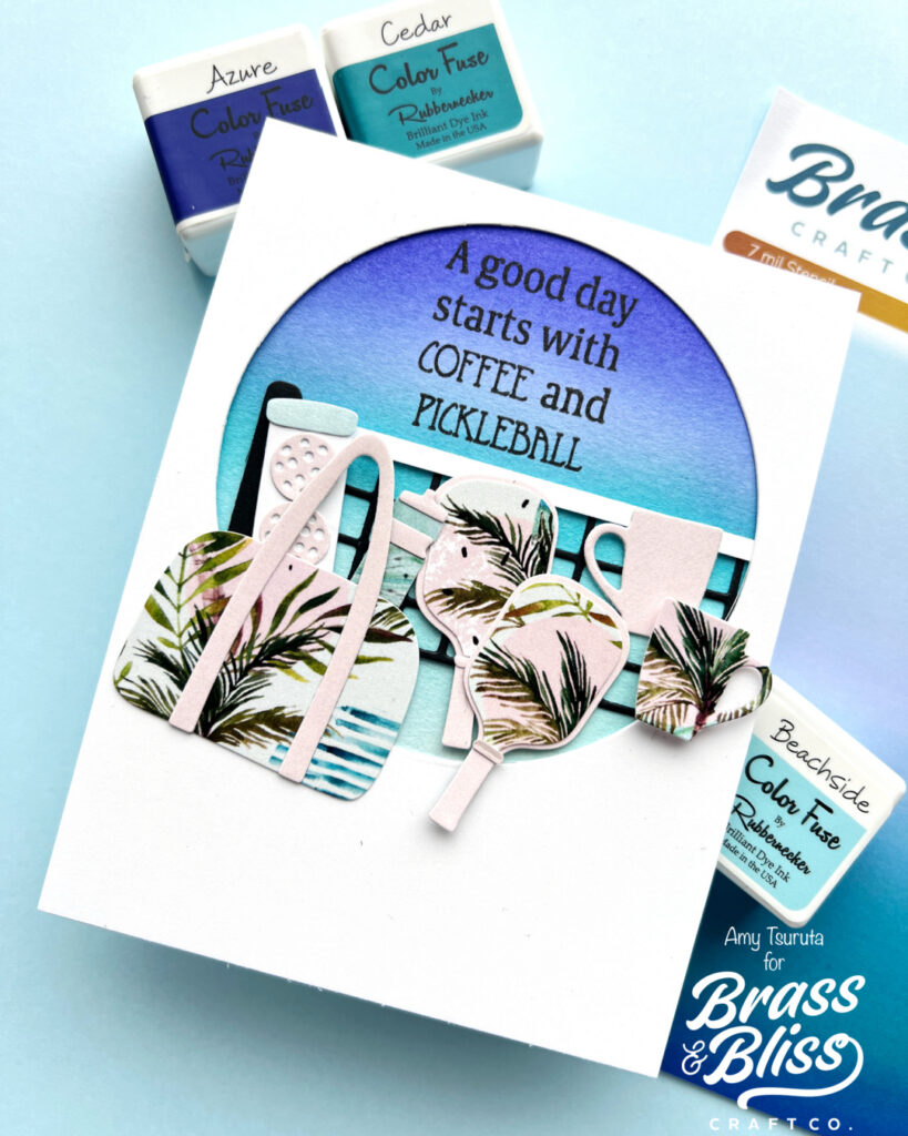 I used the Tropical Dreams 6×6 for the pickleball dies. The mug duo is from the Coffee Pots and Cups die.