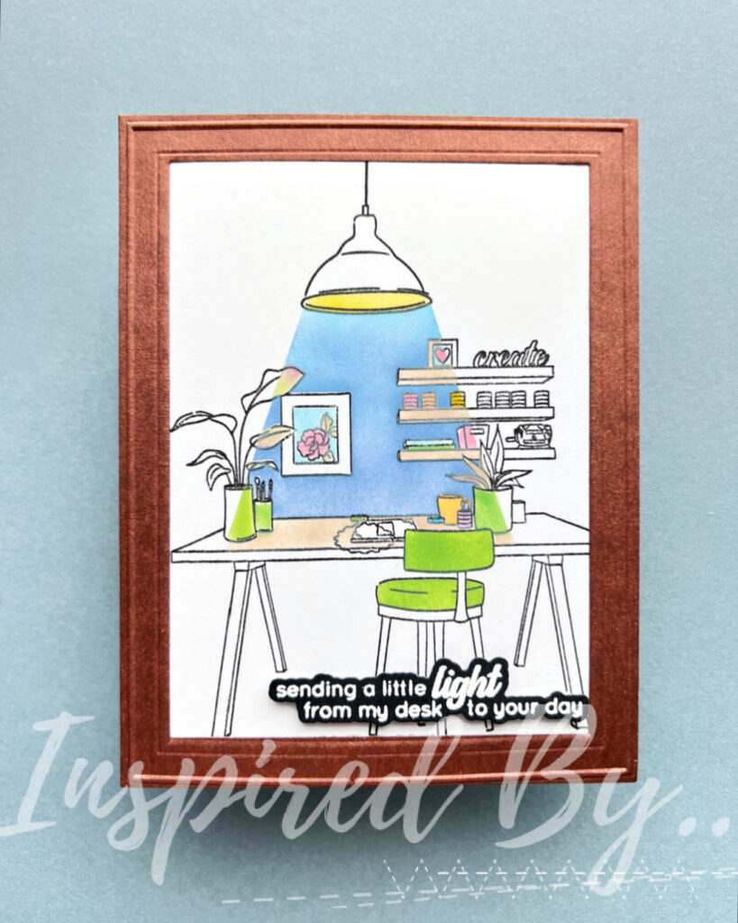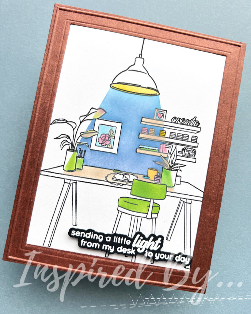 When I was studying this week’s photo, the blue fabric, specifically on the center of the table made me think of how the light shines down onto the craft desk.