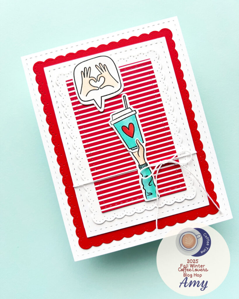 I did a bit of snipping and taping to have the hand hold that coffee. I was inspired by the very awesome Jennifer Ingle’s earlier card HERE. Gina K Designs is one of many Super Sponsors for this year’s hop.