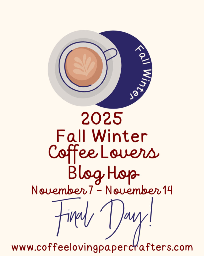 I can’t believe it is the final day of the Fall Winter Coffee Lovers blog hop! This is my 7th card and probably final one for this hop. I have several deadlines I need to work on but I’ve been known to squeeze out some extra time to whip up a card.