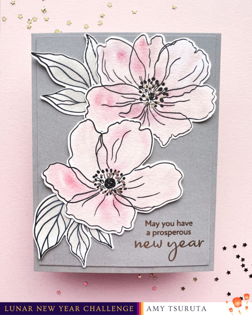 The sentiment has been heat embossed in gold. Do you notice the centers of the blooms? I used a gold paint pen for that!