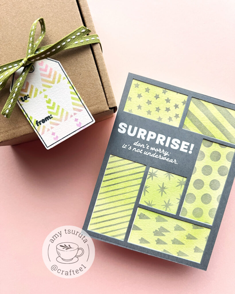 The tag was stamped in Charcoal on watercolor paper and stenciled with these inks: