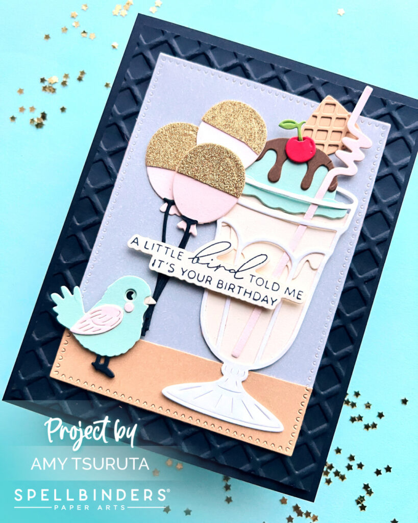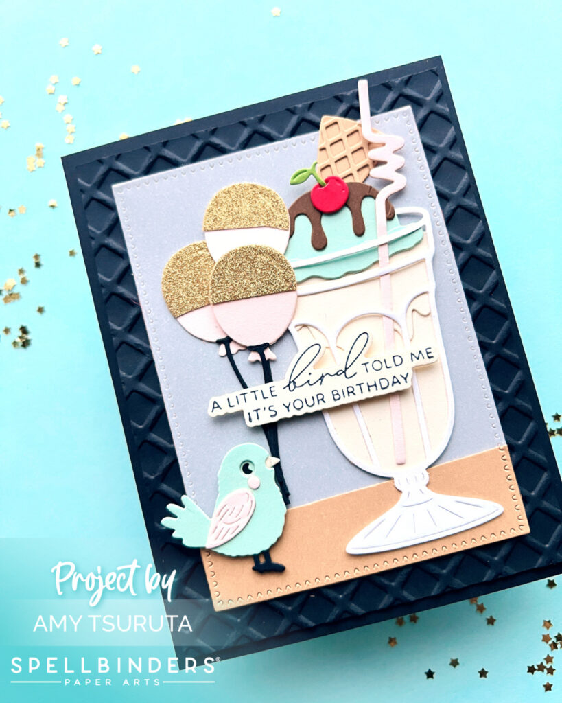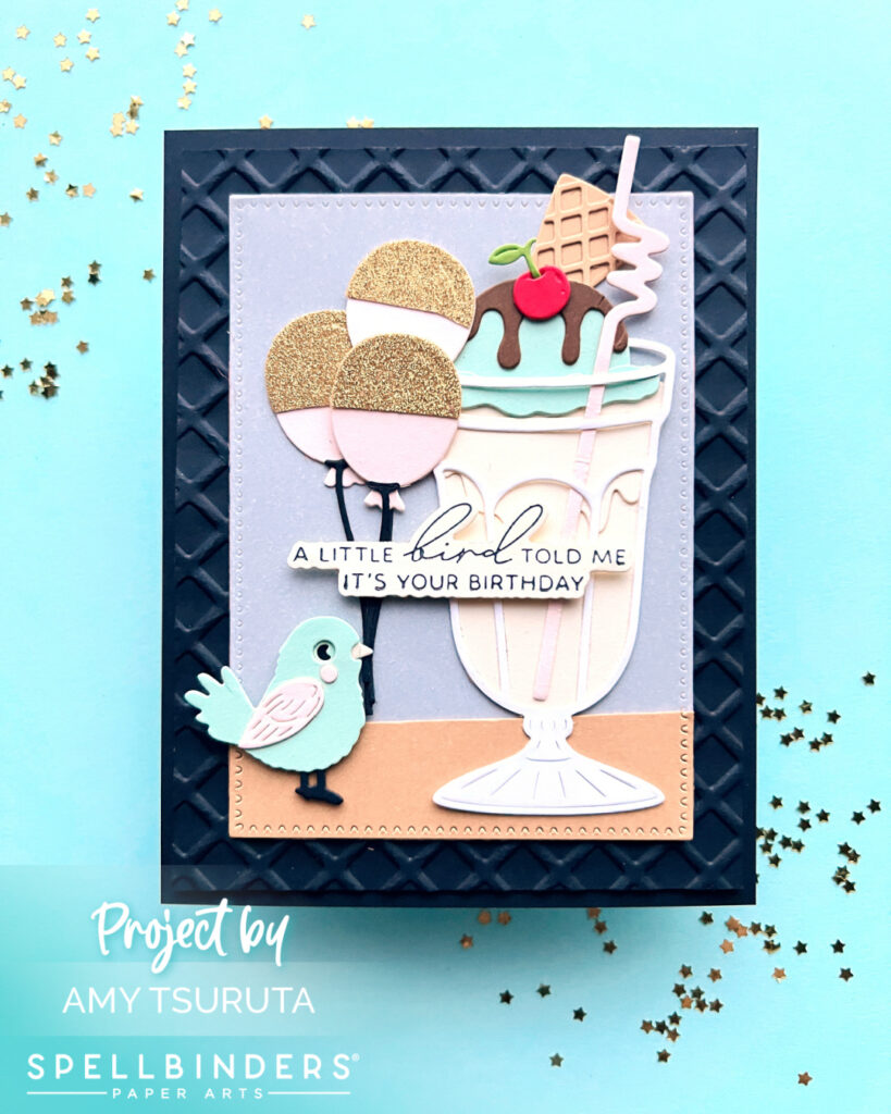 I was inspired by the balloons and colors. My card features the following Spellbinders products: