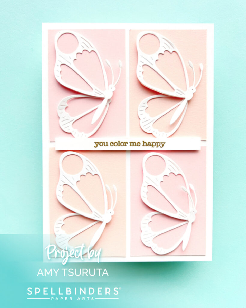 Today I decided to go clean and simple with the Spellbinders Jan Stitch Die of the Month – Butterfly Dance. The blocks are cut from: